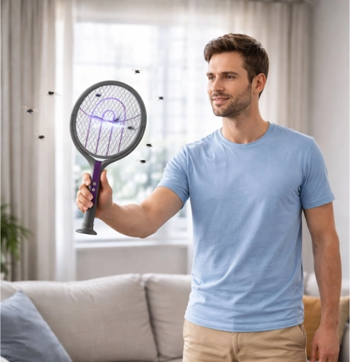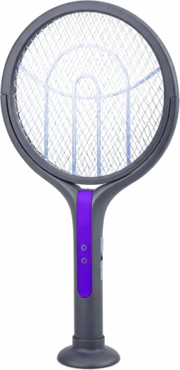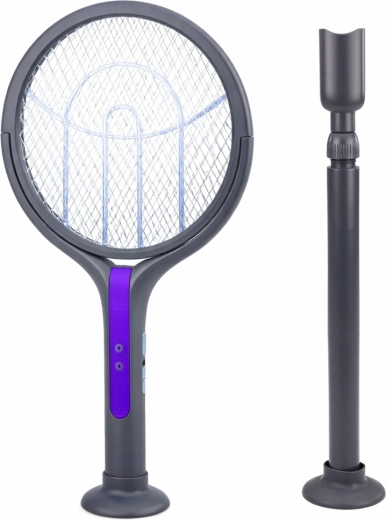 Elektryczna packa 2w1 to sprytne rozwiązanie do szybkiego i higienicznego zwalczania latających owadów. Używaj jej jako ręcznej elektrycznej rakietki do natychmiastowego trafienia owada albo umieść ją w podstawie, by działała jak lampa przyciągająca i eliminująca owady. Obrotowa głowica z możliwością blokady ułatwia trafienie pod różnymi kątami – na ścianach, sufitach i w narożnikach.