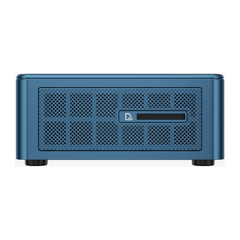 Solidna aluminiowa obudowa jest kompaktowa i wytrzymała, a chłodzenie IceBlast gwarantuje cichą pracę i stabilne temperatury. Szeroki zestaw portów (2× USB4, 4× USB‑A, 2× HDMI, czytnik SD, LAN 2,5G, audio 3,5 mm) umożliwia szybkie podłączenie peryferiów, nośników i wielu wyświetlaczy bez adapterów.
