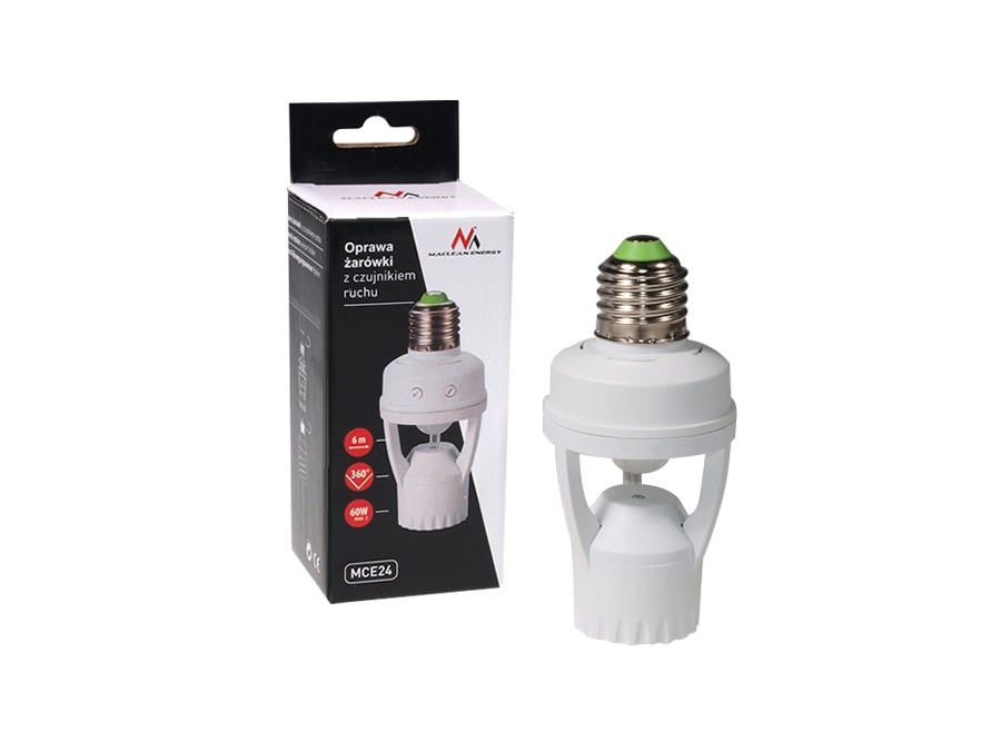 Oprawka E27 do żarówki z czujnikiem ruchu PIR i zmierzchu 360° MACLEAN