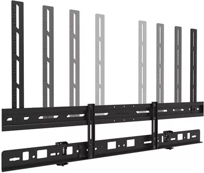 Regulowane otwory montażowe i wysokościowo regulowane listwy upraszczają montaż oraz precyzyjne wyrównanie z ekranem. Odpowiedni do ściany, stojaków podłogowych, biurkowych i systemów sufitowych.