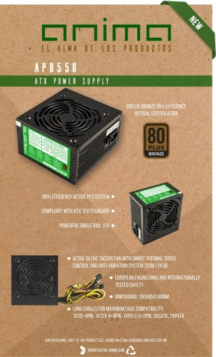ANIMA APB 550 to wysokiej jakości zasilacz do komputerów stacjonarnych, który zapewnia stabilną moc 550 W i wyższą efektywność energetyczną dzięki 80 Plus Bronze. Oznacza to niższe straty, mniej ciepła i cichszą pracę przy typowym obciążeniu.