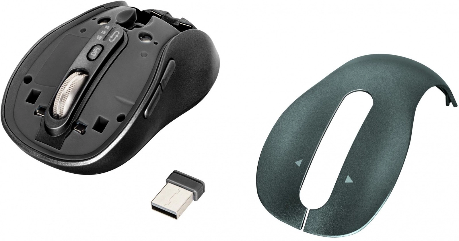 Ukryty odbiornik USB pod magnetycznie zamykana pokrywą, sześć przycisków funkcyjnych, w tym boczny scroll, oraz wytrzymałe ślizgacze czynią z myszy niezawodnego partnera dla Windows, macOS, Linux, Chrome OS oraz systemów mobilnych iOS i Android.
