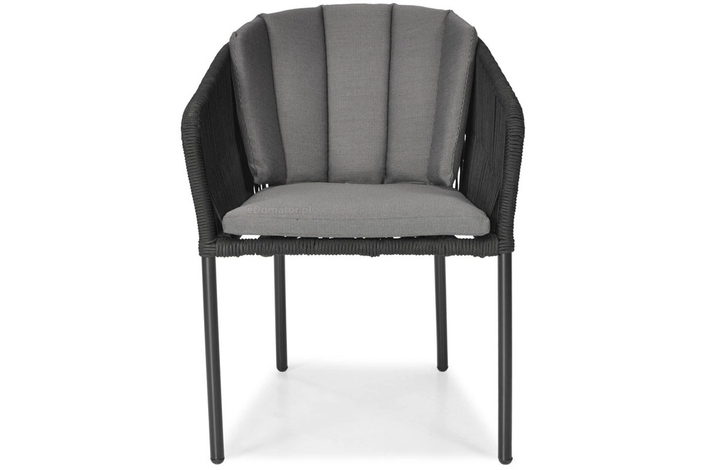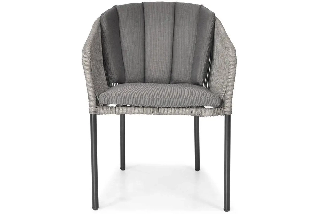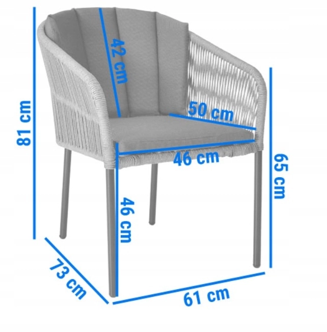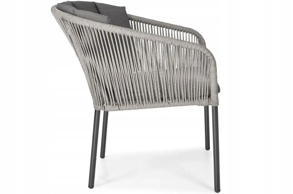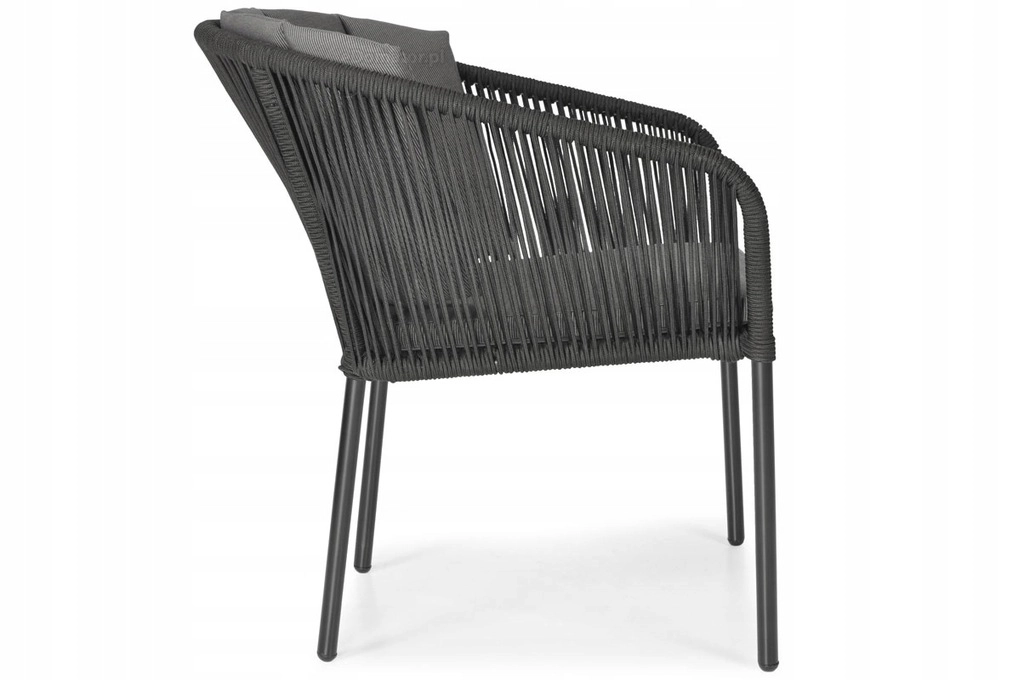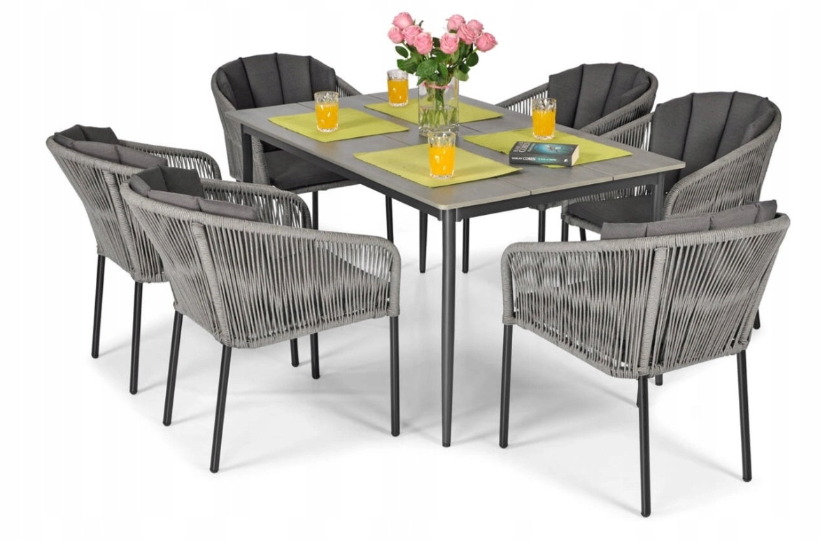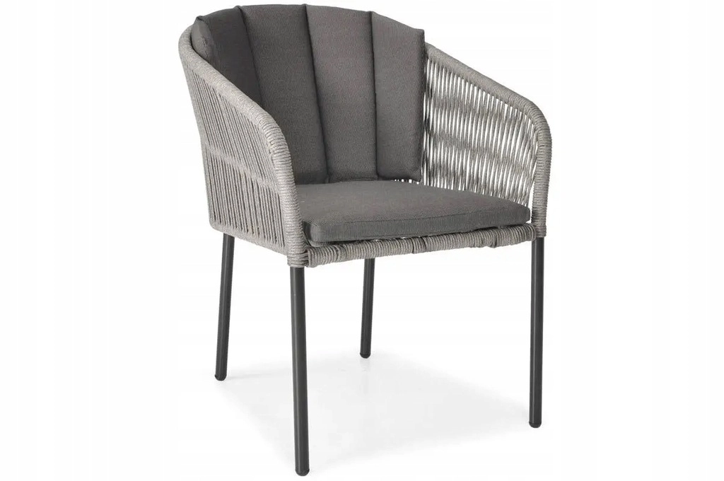 W zestawie znajduje się poduszka siedziska, która zwiększa komfort codziennego użytkowania. Neutralny szary kolor pasuje zarówno do nowoczesnych, jak i naturalnych zestawów i łatwo go połączysz ze stołem jadalnianym oraz meblami wypoczynkowymi.