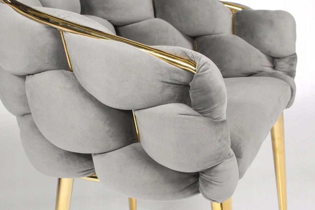 Aksamitne krzesełko FERTONE BALLOON, szare ze złotymi nóżkami