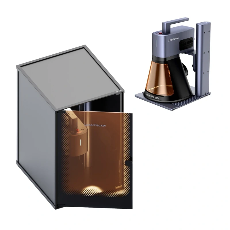 Bezpieczeństwo Safeguard: Osłona z magnetycznym filtrem i czujnikiem otwarcia, przycisk awaryjny, wydajne odsysanie oparów oraz kompatybilność z oczyszczaczem powietrza. Intuicyjne oprogramowanie LaserPecker Design Space (iOS/Android/Windows/macOS) i wsparcie LightBurn zapewniają płynny workflow od podglądu do finalnego grawerowania.