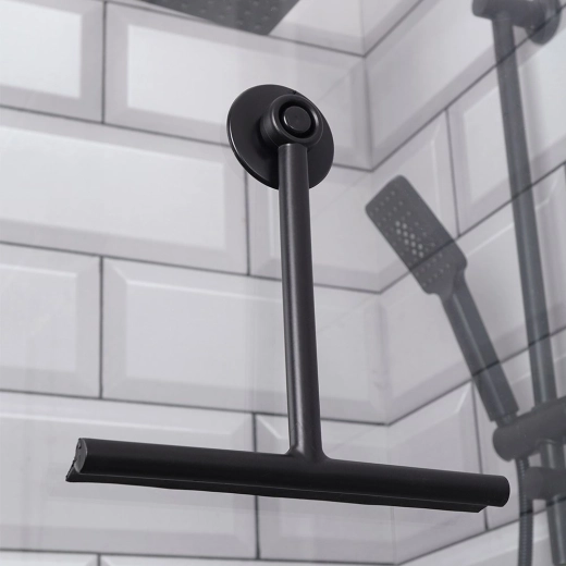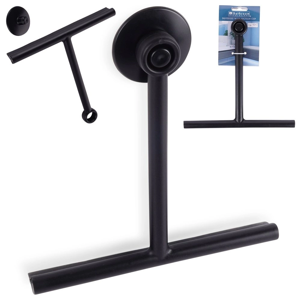 Uniwersalna czarna ściągaczka do szyb z praktyczną przyssawką do łatwego zawieszenia utrzyma Twoje kabiny prysznicowe, okna i lustra idealnie czyste. Dzięki wysokiej jakości tworzywu i elastycznej krawędzi z TPE zbiera wodę szybko i bez wysiłku, pozostawiając powierzchnie bez smug i bez zarysowań. Kompaktowe wymiary oraz stylowy, minimalistyczny design doskonale wpasują się w każdą łazienkę.