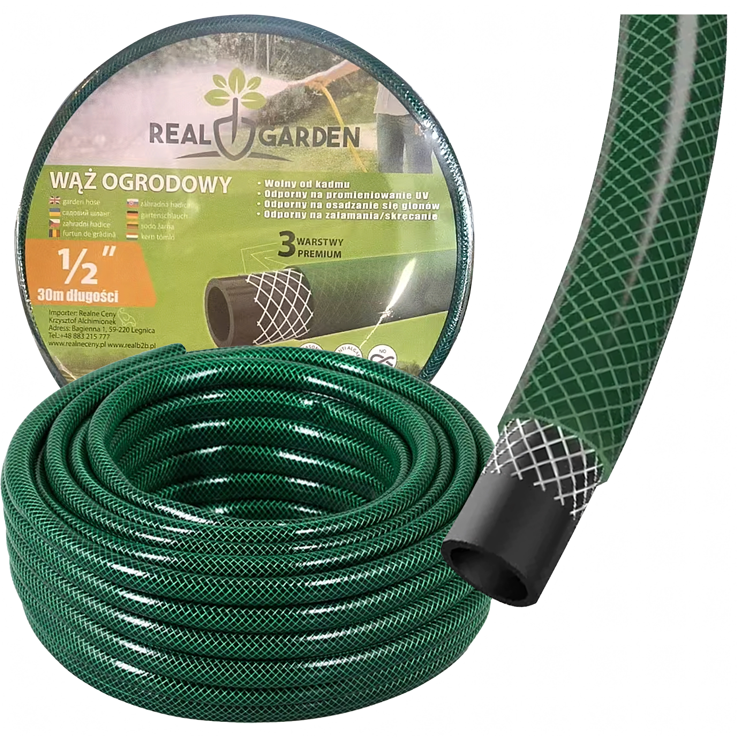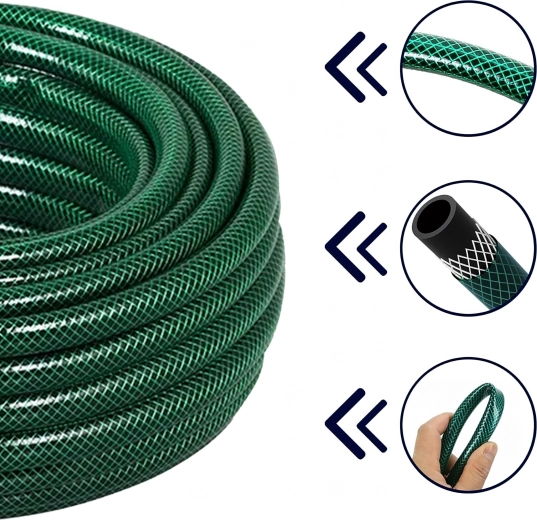 Praktyczny wąż ogrodowy o długości 30 m i średnicy 1/2" oferuje 3-warstwową konstrukcję, która zapewnia wysoką trwałość, elastyczność bez załamywania oraz niezawodny przepływ wody do codziennego nawadniania ogrodu, mycia samochodu i porządków wokół domu.