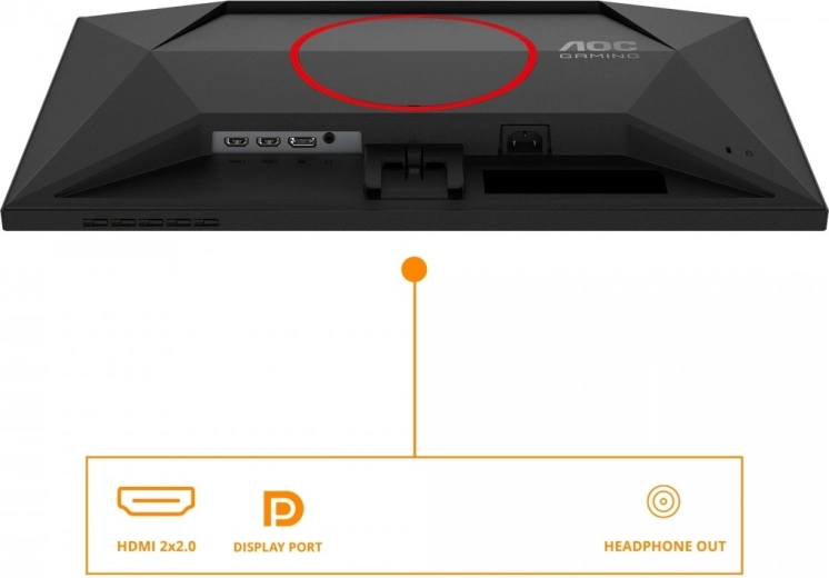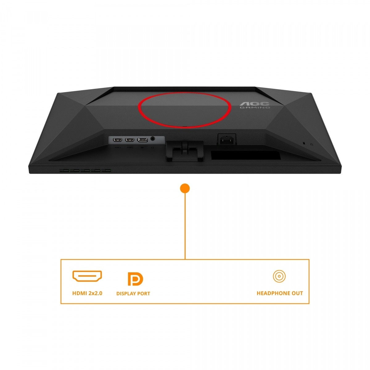 Dzięki podwójnemu HDMI i portowi DisplayPort łatwo podłączysz wiele urządzeń, a cienkie ramki i stabilna podstawa oszczędzają miejsce na biurku. Tylny design z czerwonym akcentem nadaje monitorowi wyrazisty gamingowy wygląd i jest gotowy do montażu VESA.