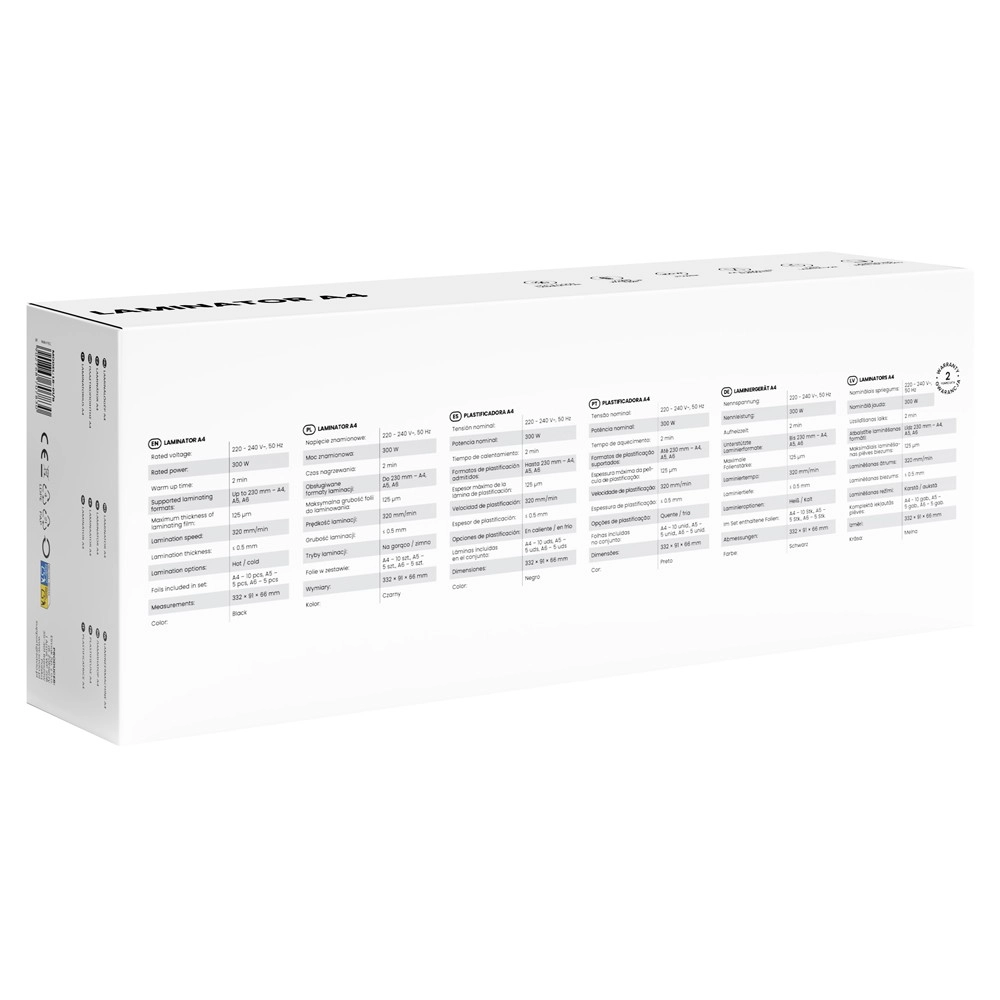 - Laminator LR-01/B, zestaw startowy folii: 10× A4, 5× A5, 5× A6
