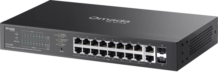 Omada Easy Managed 20‑portowy przełącznik gigabitowy z 16× PoE+