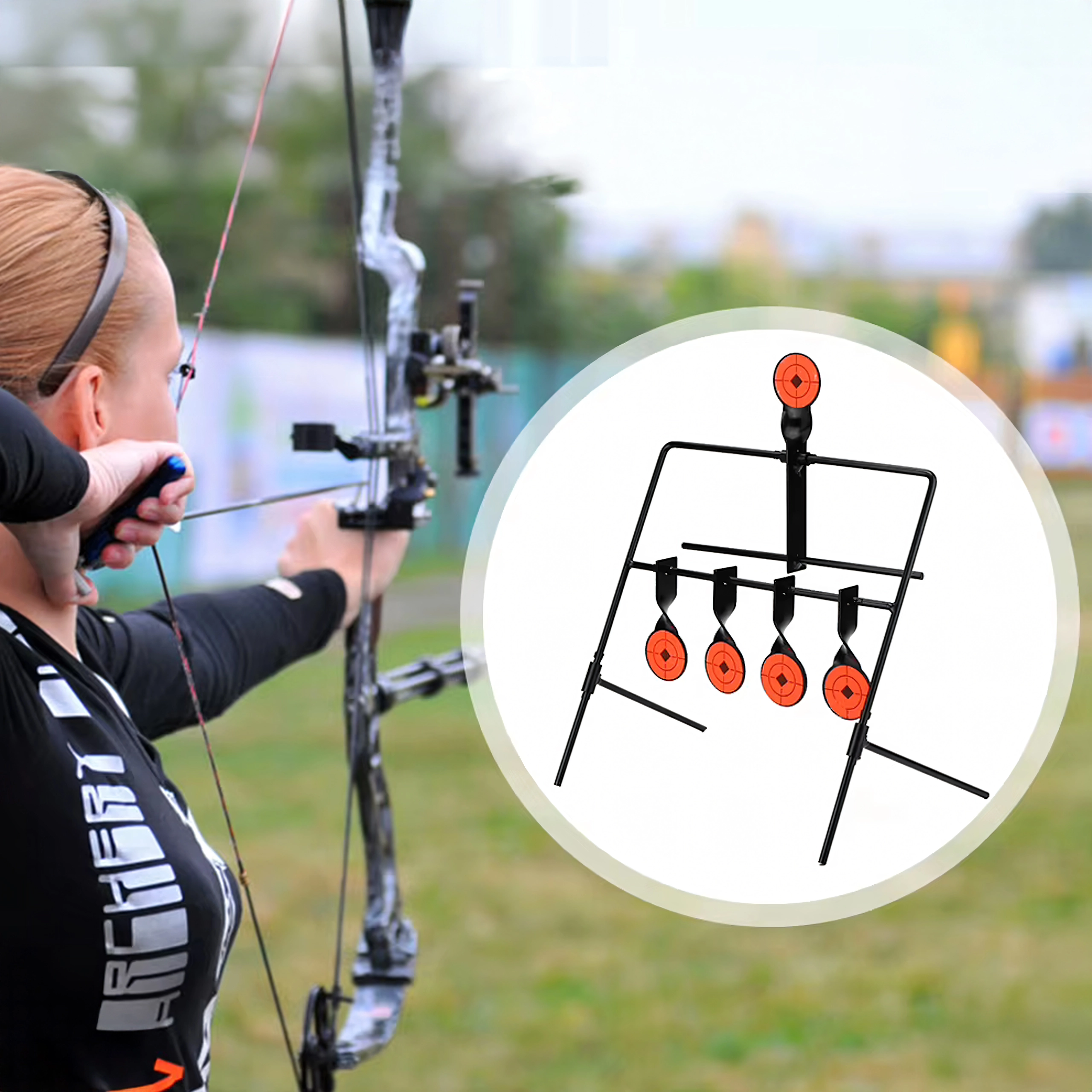 Wytrzymała metalowa konstrukcja, wyraziste pomarańczowe pola oraz samonośna rama gwarantują dobrą widoczność i stabilność w terenie. Odpowiednia do treningu precyzji na strzelnicy i w ogrodzie, do różnych typów strzelania (zgodnie z mocą sprzętu i zasadami bezpieczeństwa).