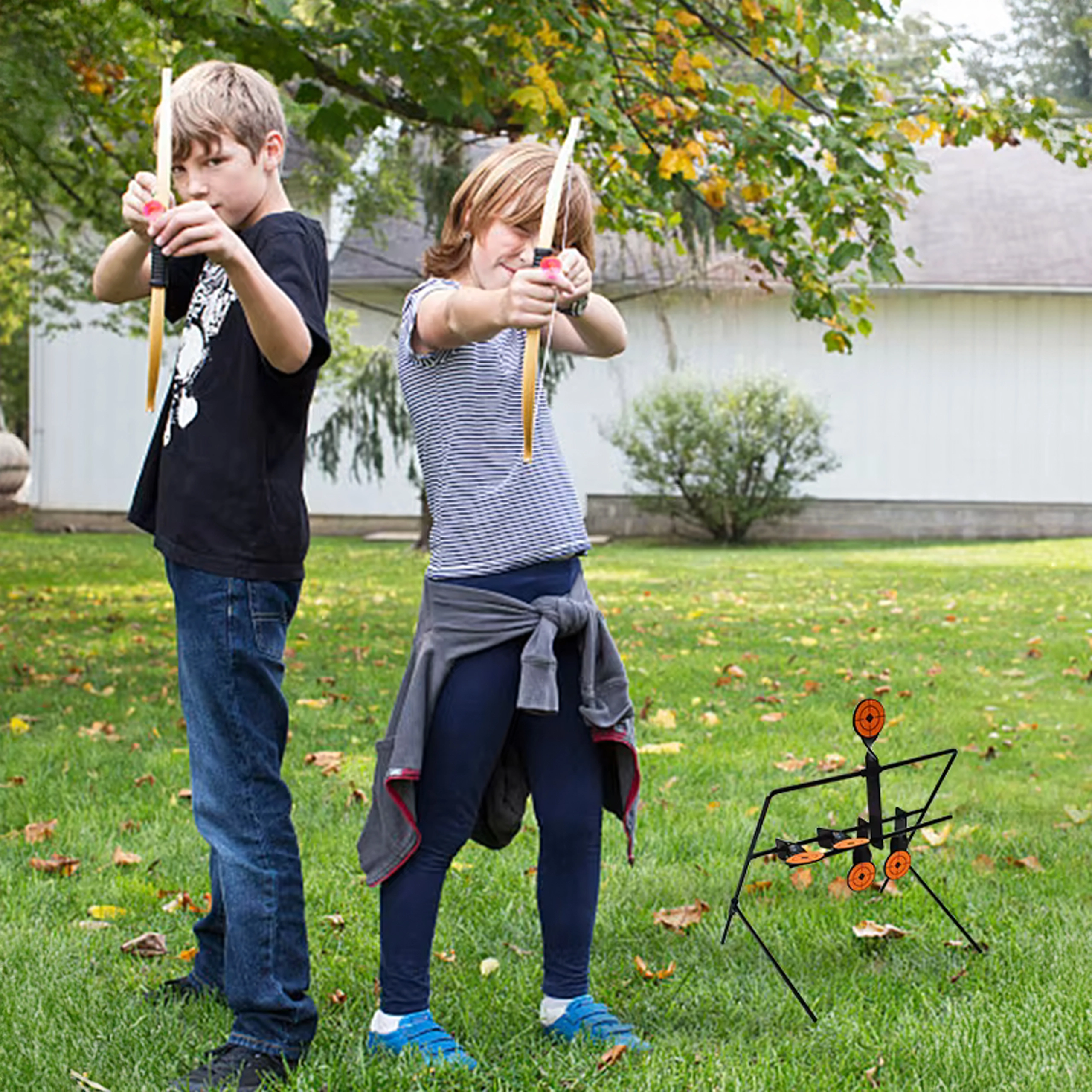 Dolne cele obracają się po trafieniu, a górna tarcza resetująca przywraca je do pozycji wyjściowej. Trenuj płynnie bez podchodzenia do tarczy.