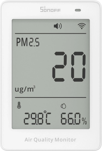Kompaktowy monitor jakości powietrza Sonoff AirGuard zapewnia dokładny pomiar PM2.5 i PM10, temperatury oraz wilgotności w czasie rzeczywistym. Dzięki łączności Wi‑Fi, integracji ze standardem Matter i czytelnemu ekranowi LCD 3,73" łatwo monitorujesz warunki w domu i biurze. Do dyspozycji masz historię danych do 1 roku, inteligentne powiadomienia, dźwiękowe i wizualne alarmy oraz wygodne sterowanie przez aplikację lub głos.