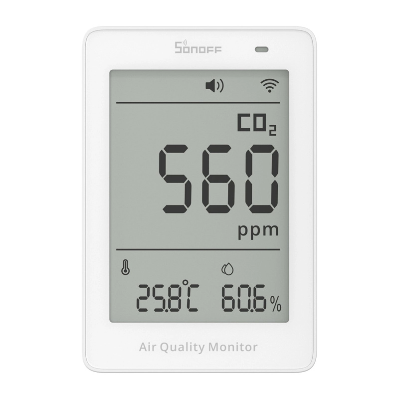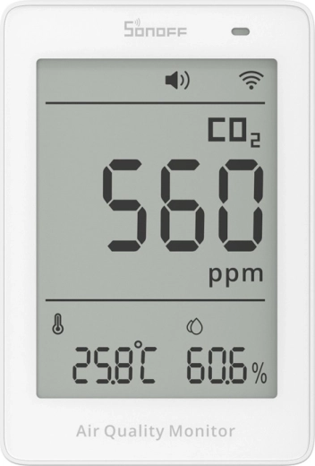 Kompaktowy monitor jakości powietrza Sonoff AirGuard CO2 z precyzyjnym czujnikiem NDIR mierzy w czasie rzeczywistym CO82, temperaturę i wilgotność. Oferuje wyświetlacz LCD 3,73", Wi‑Fi 2,4 GHz, wsparcie dla Matter, alarmy dźwiękowe i świetlne oraz historię pomiarów, dzięki czemu masz wgląd w środowisko w domu, biurze i pokoju dziecięcym.