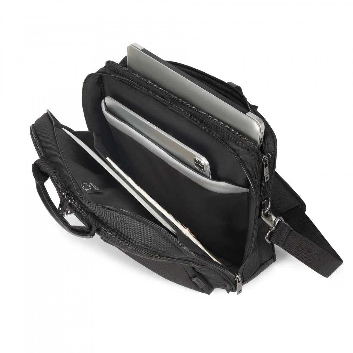 Premiumowa torba na laptop 14–16" DICOTA Top Traveller Seven oferuje najwyższy poziom ochrony, przemyślaną organizację oraz zrównoważony design z materiałów z recyklingu rPET. Dzięki technologii DICOTA Cushion Technology, zintegrowanej ochronie RFID oraz specjalnej kieszeni na lokalizator Twoje urządzenie i dane osobiste będą bezpieczne – stylowo i odpowiedzialnie.