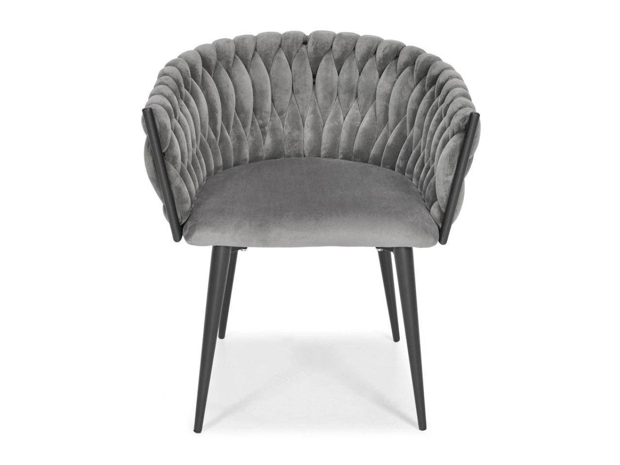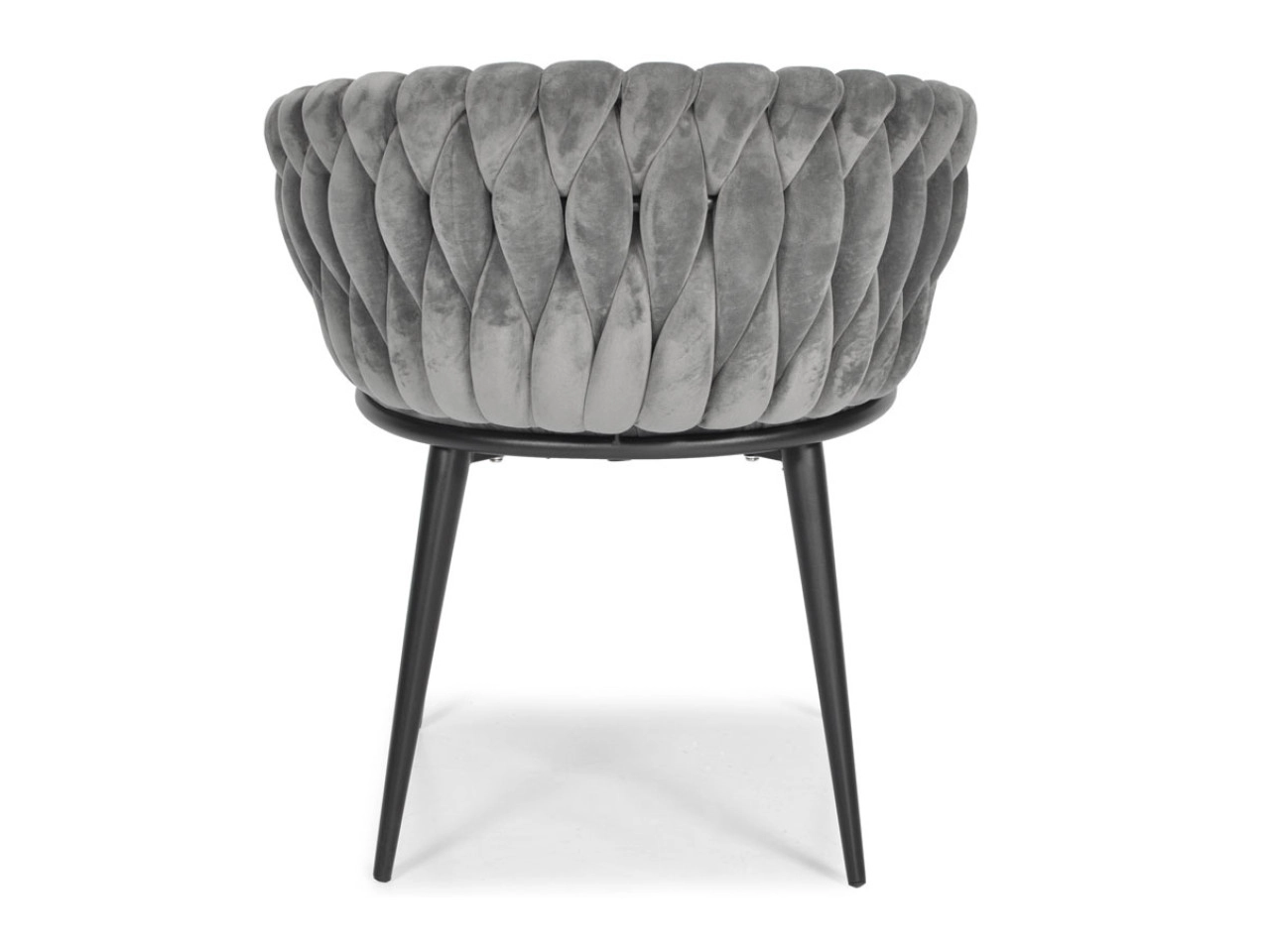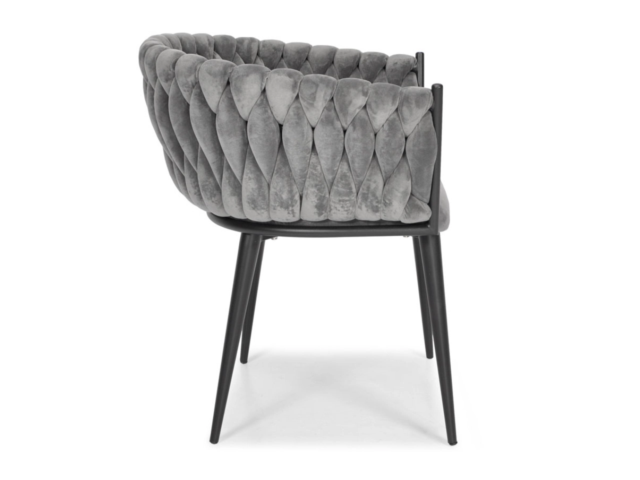 Stylowe welurowe krzesło w szarym odcieniu z plecionym oparciem i czarnymi metalowymi nogami doda wnętrzu nuty luksusu. Oferuje miękkie siedzisko, ergonomiczny kształt oraz stabilną konstrukcję dla codziennego komfortu przy stole i podczas dłuższego siedzenia.