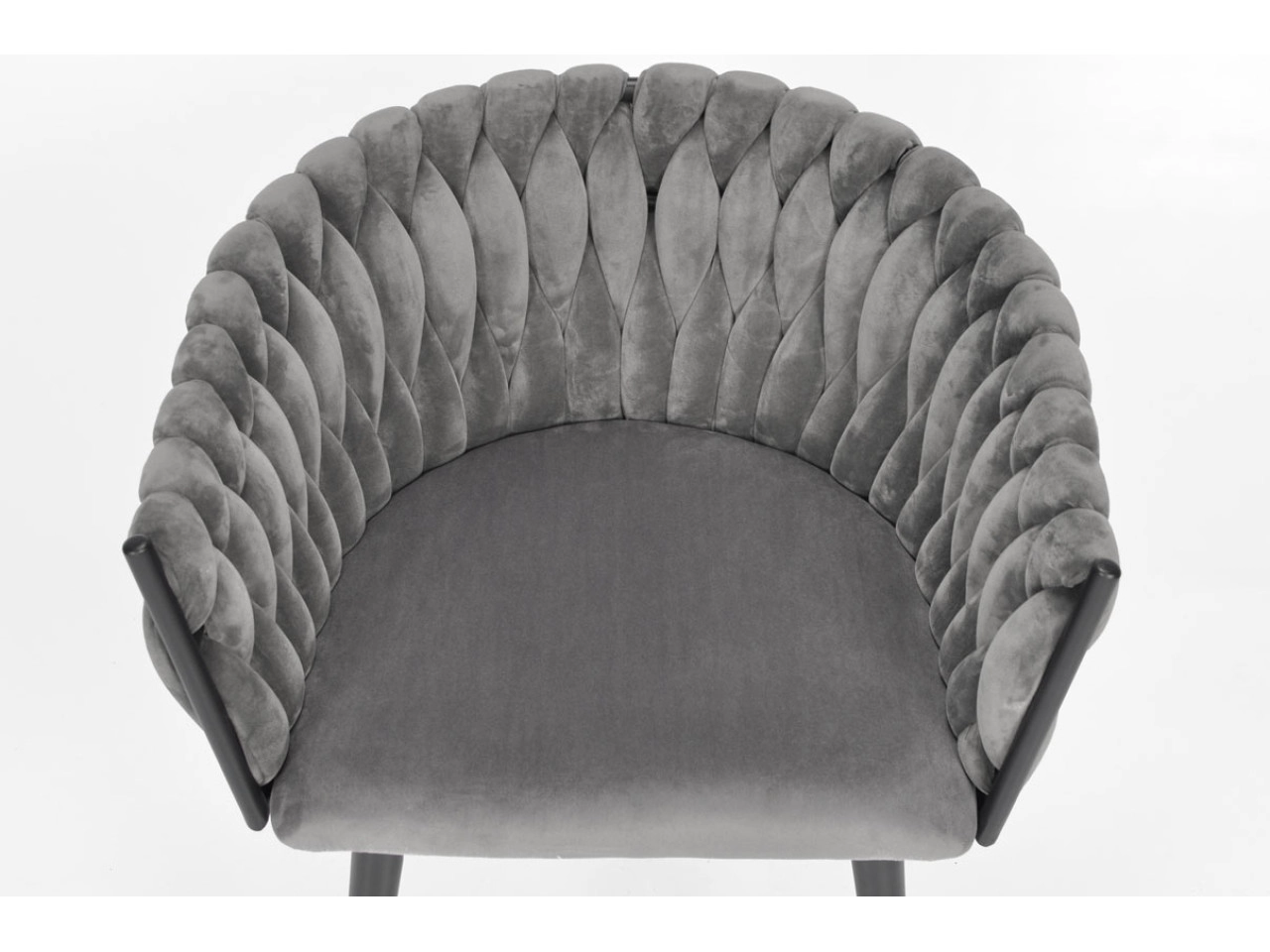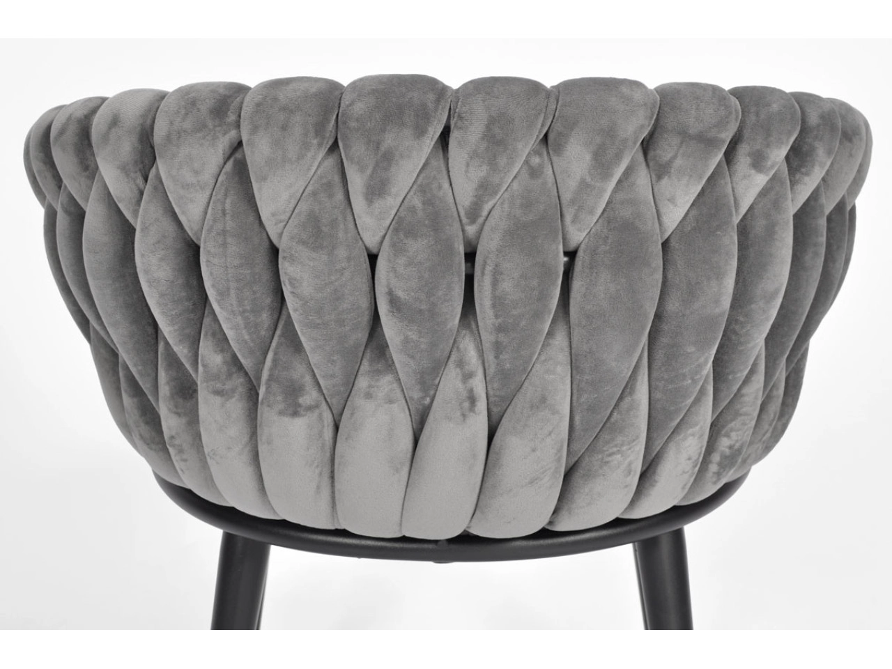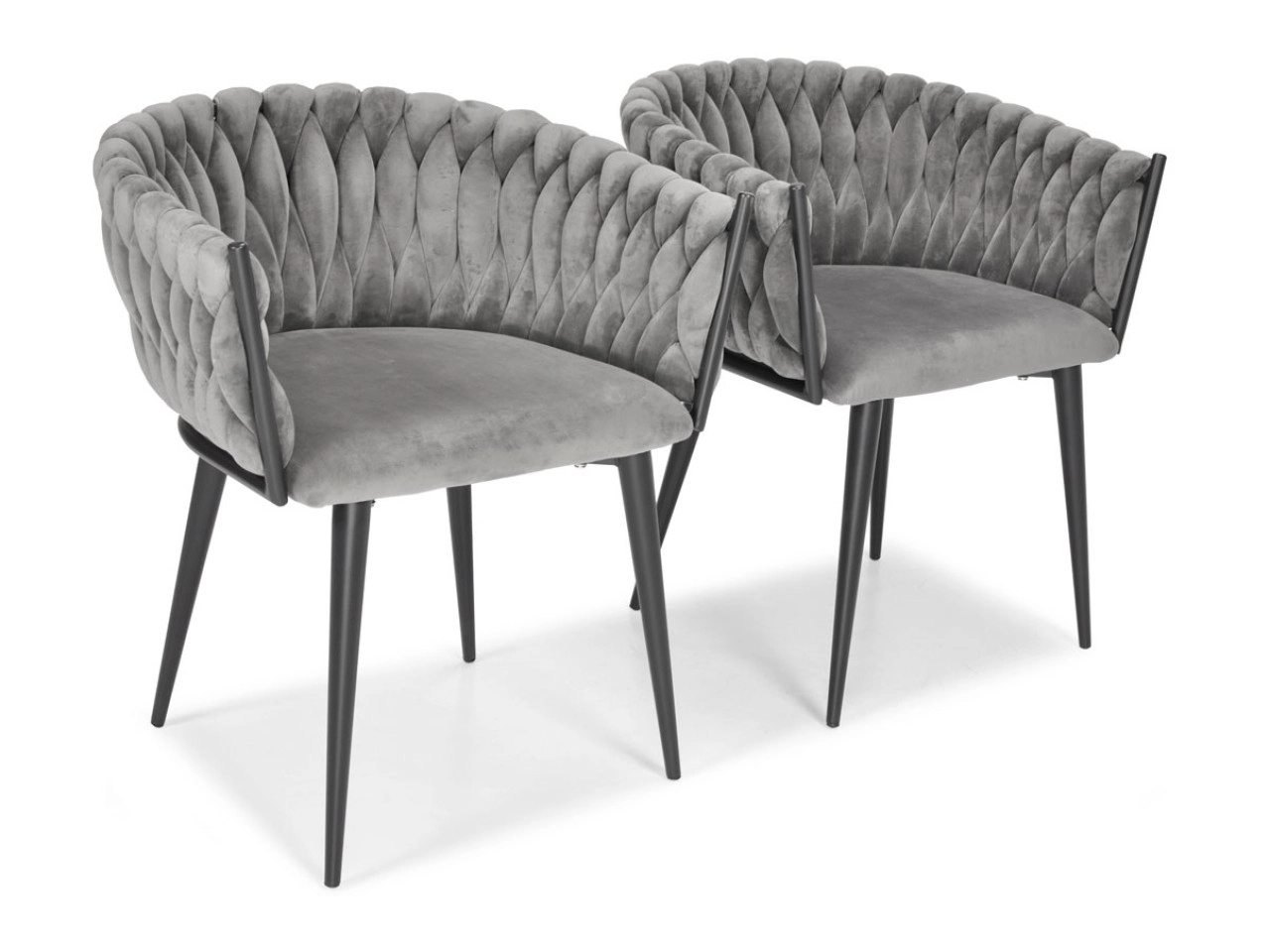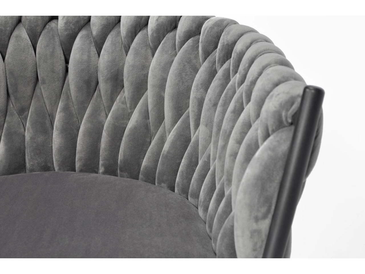 Stylowe welurowe krzesło w szarym odcieniu z plecionym oparciem i czarnymi metalowymi nogami doda wnętrzu nuty luksusu. Oferuje miękkie siedzisko, ergonomiczny kształt oraz stabilną konstrukcję dla codziennego komfortu przy stole i podczas dłuższego siedzenia.