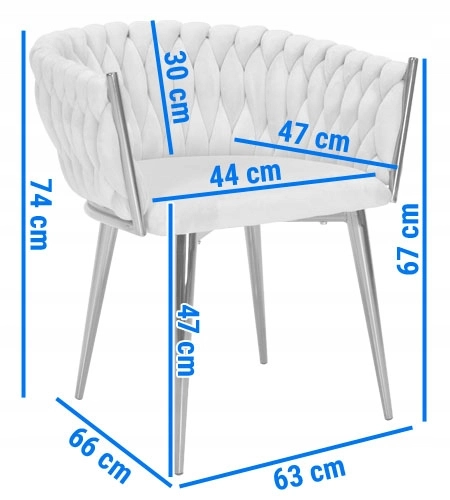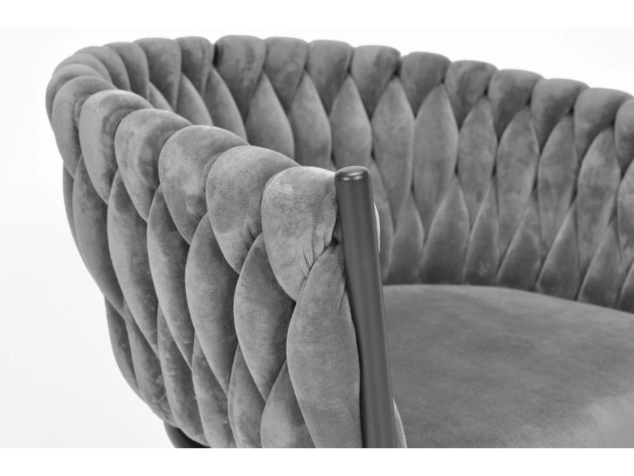 Wprowadź do swojego domu elegancję i komfort w nowoczesnym stylu glamour. Welurowa tapicerka z delikatnym połyskiem wygląda luksusowo i pięknie kontrastuje z czarnymi, smukłymi metalowymi nogami. Wyraziste plecione oparcie to dekoracyjny akcent, który przyciąga wzrok od pierwszego spojrzenia i zamienia krzesło w dominujący element aranżacji.