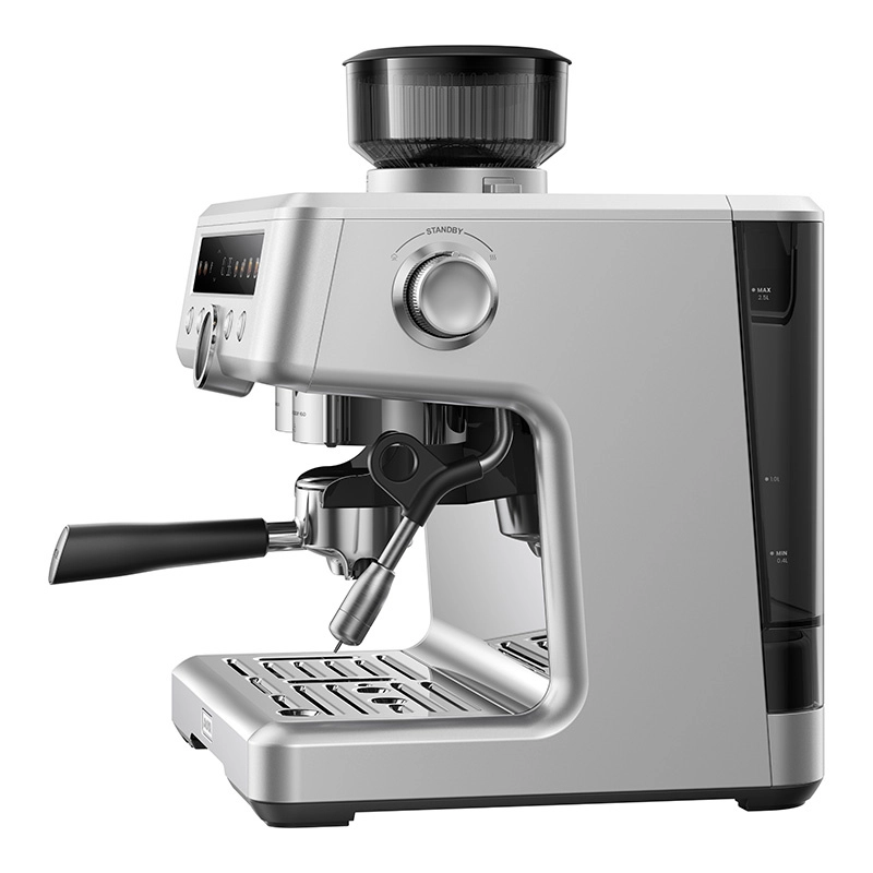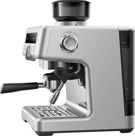 Wbudowany stożkowy młynek z 34 poziomami mielenia i zasobnikiem na 250 g ziaren (z silikonowym uszczelnieniem) utrzymuje maksymalną świeżość. Funkcja Anti‑Static Grinding ogranicza osadzanie się i rozsypywanie zmielonej kawy. Głowica zaparzająca 58 mm z manometrem umożliwia precyzyjną kontrolę przebiegu ekstrakcji, a ciśnienie 20 barów wydobywa z każdego ziarna pełnię aromatu.