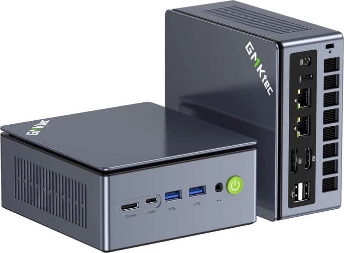 Dla zestawów wielomonitorowych przygotowano obsługę 4× 8K/60 Hz przez HDMI 2.1, DisplayPort 2.0 oraz 2× USB4 (DP Alt Mode). Bogaty zestaw portów, w tym OCuLink (PCIe 4.0×4), 2× 2.5G RJ45, USB 3.2 Gen 2 i USB4, ułatwia podłączanie peryferiów, szybki transfer danych i stabilną pracę w sieci. Podwójne chłodzenie utrzymuje temperatury w ryzach dla cichej i niezawodnej pracy.
