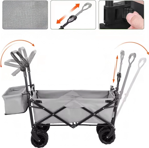 Wózek złożysz w kilka sekund do kompaktowych rozmiarów, więc nie zajmie miejsca w bagażniku ani w garażu. Teleskopowa dyszel-rączka oraz ewentualne kieszenie podręczne zwiększają komfort podczas przewożenia. Świetny wybór dla rodzin, działkowiczów i aktywnych użytkowników, którzy szukają niezawodnego i łatwego do przechowywania wózka transportowego.