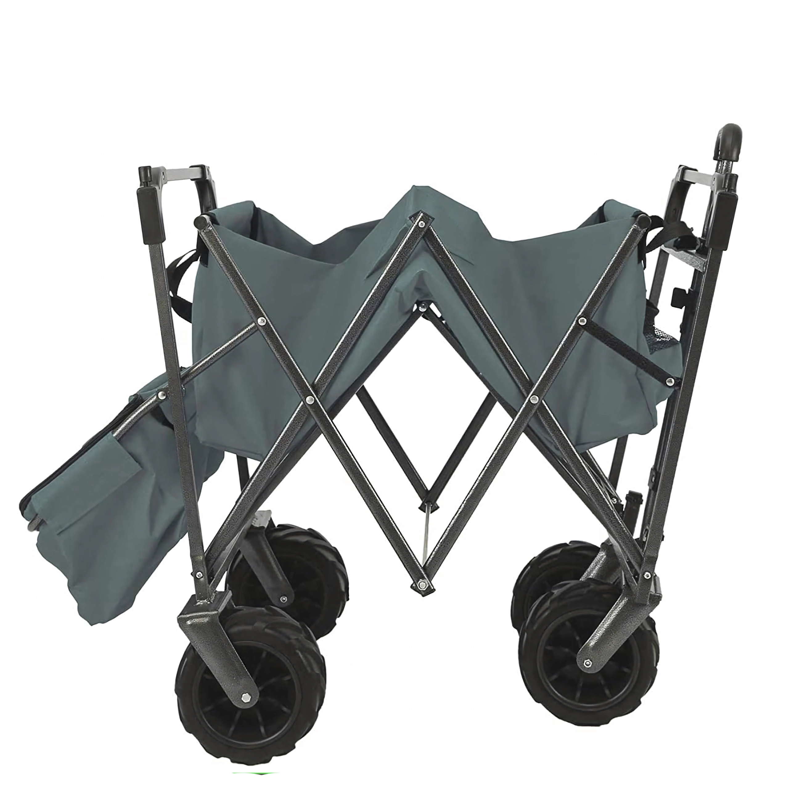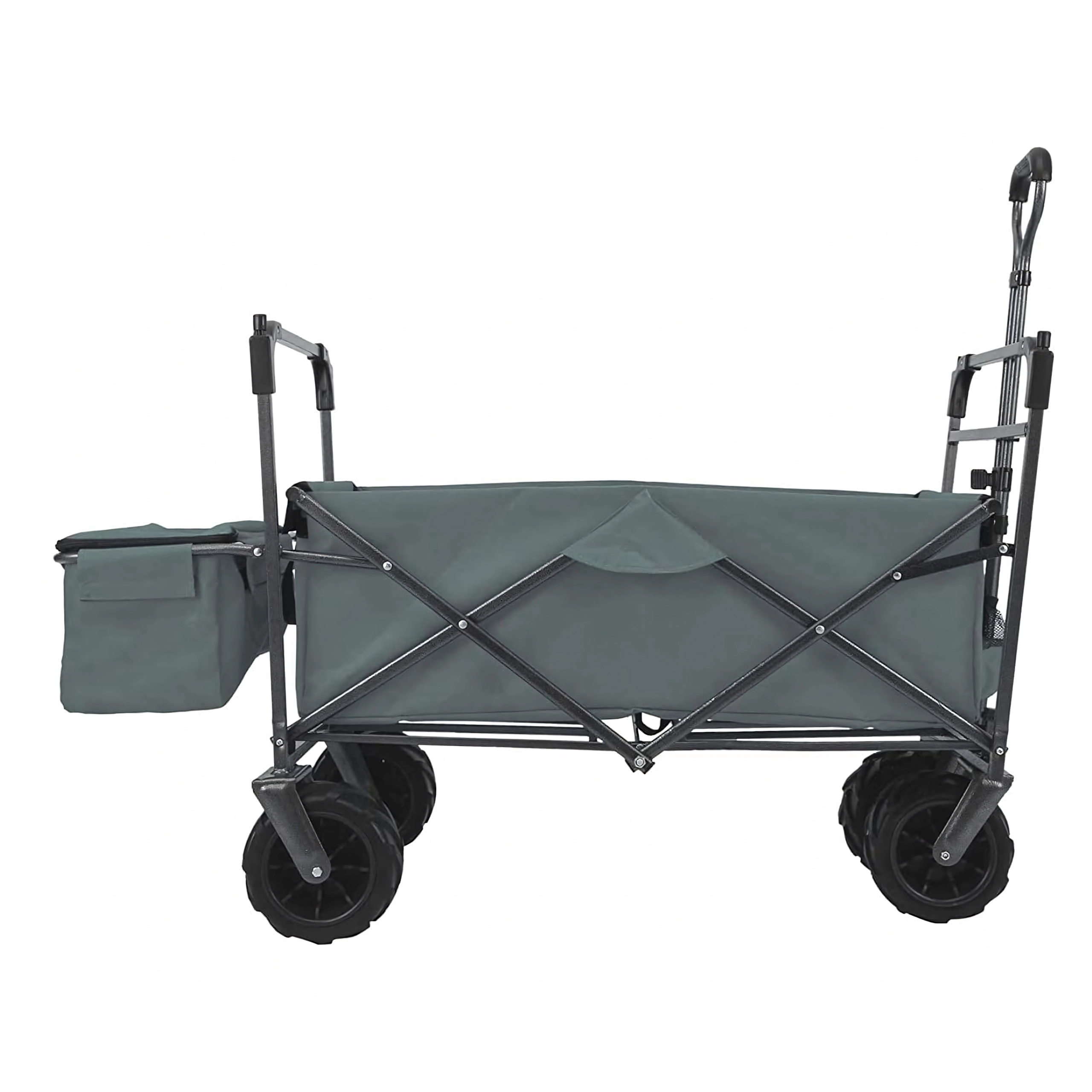 Duże, wielozadaniowe koła zapewniają płynne poruszanie się po piasku, trawie i żwirowych ścieżkach. Idealne na plażę, do ogrodu i na kemping.