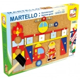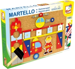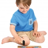 Dzieci przykładają elementy i delikatnie przybijają je młotkiem. Gra wzmacnia koordynację oko–ręka, cierpliwość i precyzję.