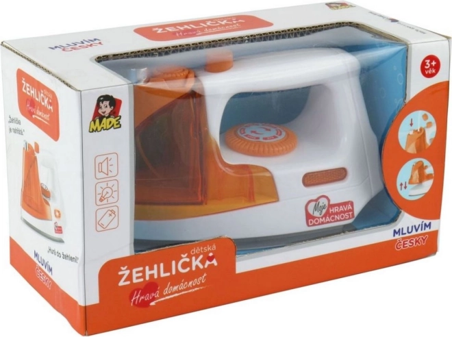 Wszystkie małe pomocnice i pomocnicy docenią luksusowe żelazko na baterie, które ucieszy każde dziecięce serce. Żelazko nagrzewa się i rozbrzmiewa przyjemna melodia wraz z czeskim komunikatem.