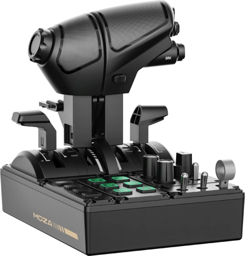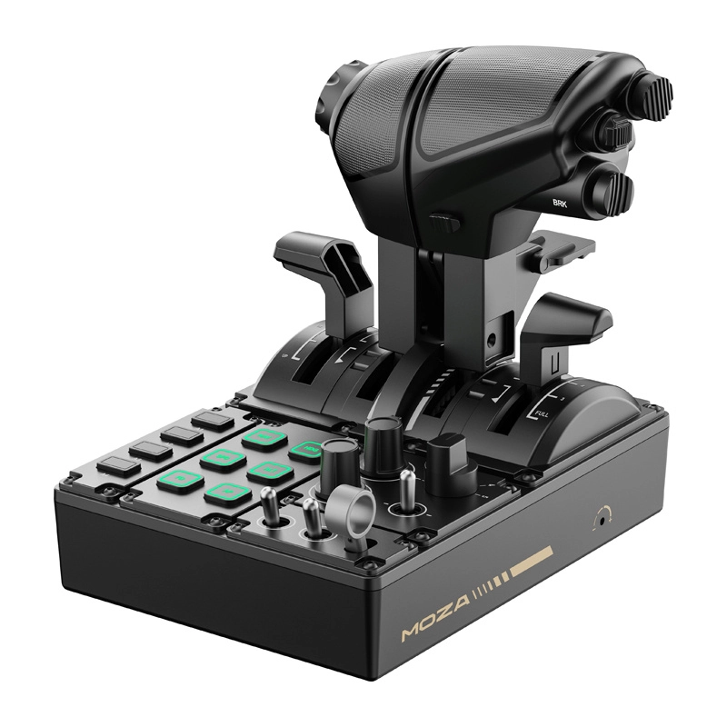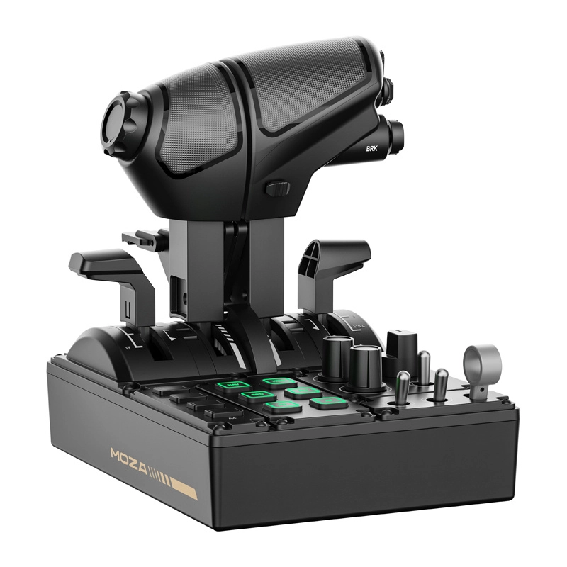 Bogaty zestaw przełączników, pokręteł i podświetlanych przycisków rozszerza kontrolę nad systemami samolotu. Pełna kompatybilność z ekosystemem MOZA bez konieczności skomplikowanej konfiguracji.