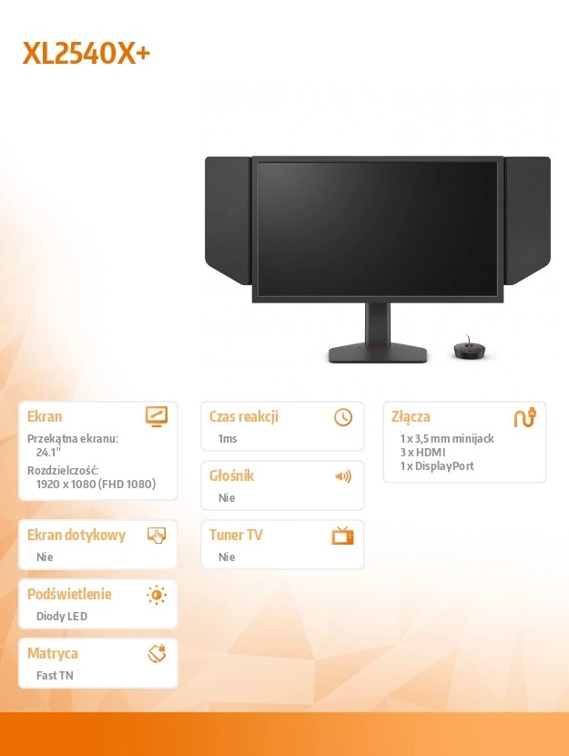 Zyskaj przewagę z profesjonalnym monitorem e‑sportowym BENQ XL2540X. Oferuje ekstremalnie szybki czas reakcji 1 ms, płynną rozgrywkę i świetny kontrast dla maksymalnej czytelności akcji. Dzięki antyrefleksyjnym osłonom i ergonomicznemu stojakowi utrzymasz koncentrację i komfort nawet podczas długich sesji grania.