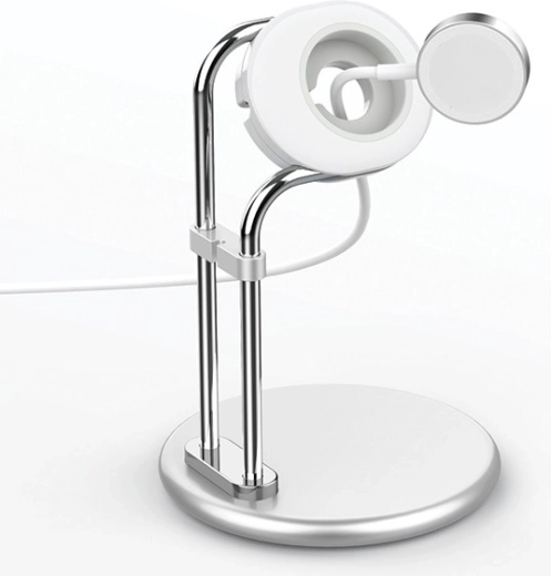 Utrzymuj kable pod kontrolą, a zegarek zawsze pod ręką. Elegancka podstawka porządkuje przestrzeń roboczą i nadaje jej profesjonalny wygląd.
