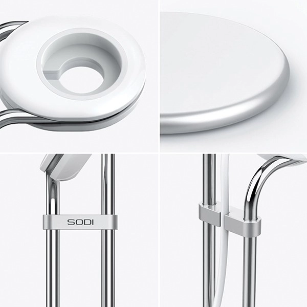 Przemyślana wysokość i geometria ramion utrzymują ładowarkę pewnie na miejscu, a antypoślizgowy silikon chroni powierzchnię mebli przed zarysowaniami. Minimalistyczny, futurystyczny wygląd współgra z laptopem i inną elektroniką, czyniąc podstawkę eleganckim dodatkiem do wnętrza.