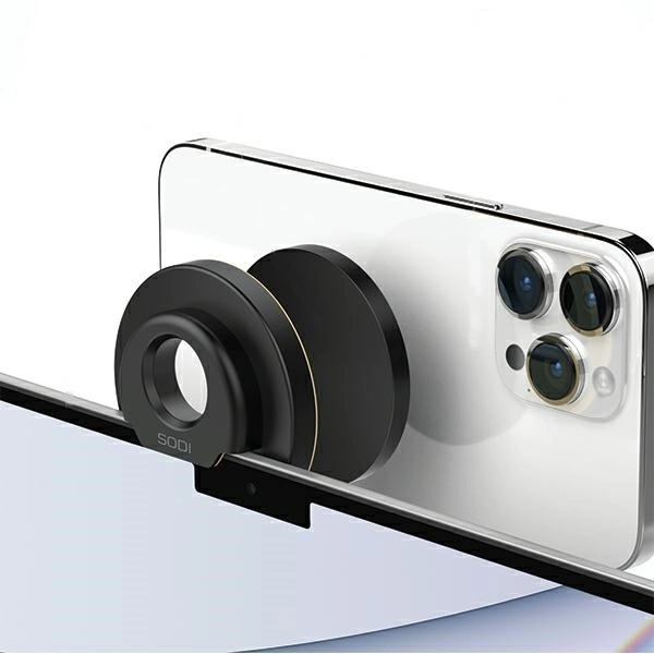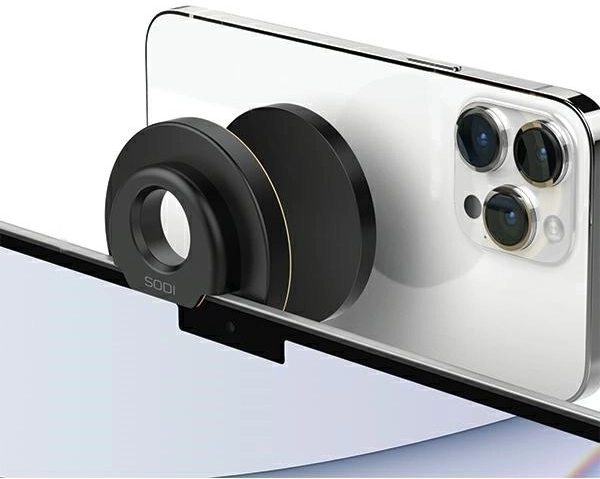 Wykorzystaj tylny aparat iPhone’a do wideorozmów w znakomitej jakości. Uchwyt Sodi BM‑300 dzięki magnetycznemu złączu MagSafe łatwo mocuje się do iPhone’a, a cienki klips przytrzymuje go na górnej krawędzi MacBooka. Stabilna pozycja telefonu gwarantuje naturalny kąt ujęcia i ostrzejszy obraz podczas spotkań, streamingu i nagrywania.