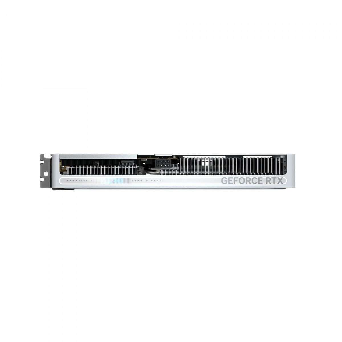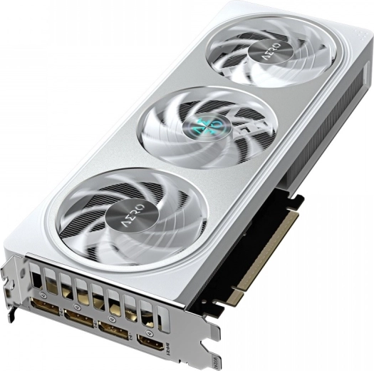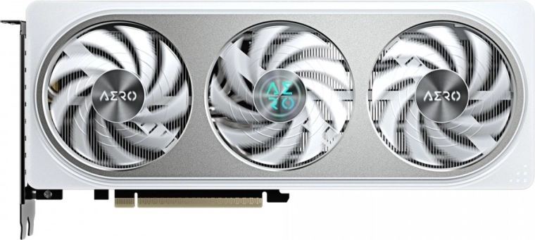 Biało‑srebrne wykończenie AERO świetnie pasuje do czystych buildów. Solidny metalowy backplate zwiększa sztywność karty, poprawia odprowadzanie ciepła i chroni PCB.