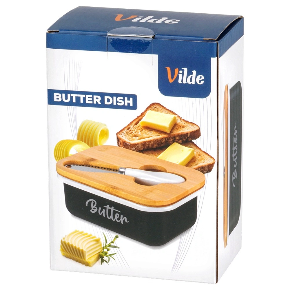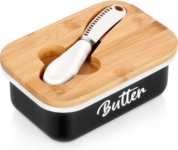 Maselniczka czarna z bambusową pokrywką i nożykiem Vilde