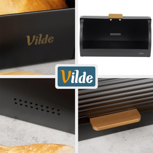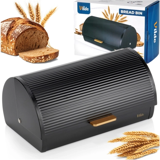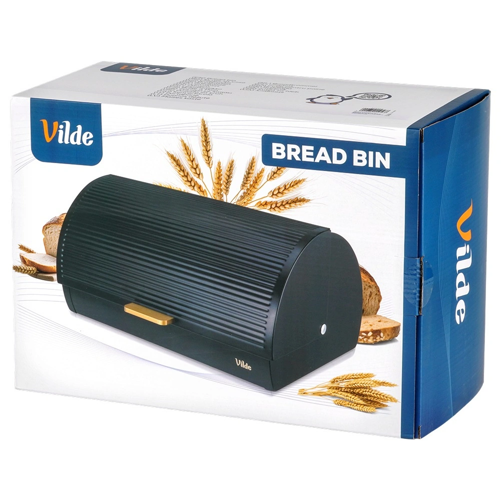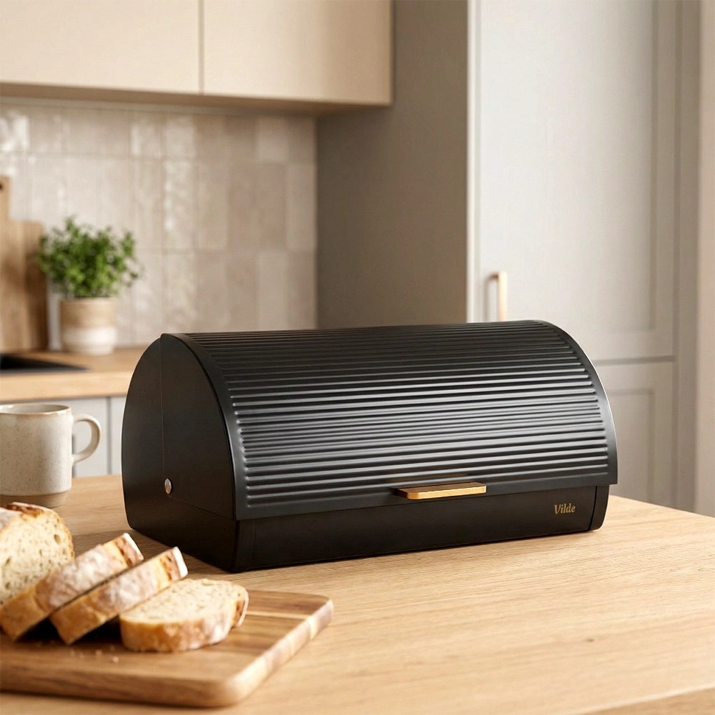 Żłobkowane roletowe wieko ze złotym uchwytem zapewnia wygodny codzienny dostęp, a częściowa szczelność ogranicza przepływ powietrza i pomaga zachować świeżość oraz smak pieczywa na dłużej. Minimalistyczny wygląd i eleganckie detale czynią z niego dekoracyjny element blatu.