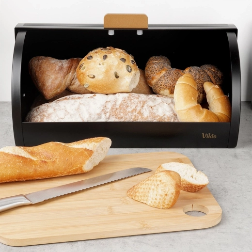 Konstrukcja chlebaka z roletowym wiekiem pomaga zapobiegać wysychaniu, dzięki czemu chleb i bułki zachowują aromat i chrupkość przez dłuższy czas.