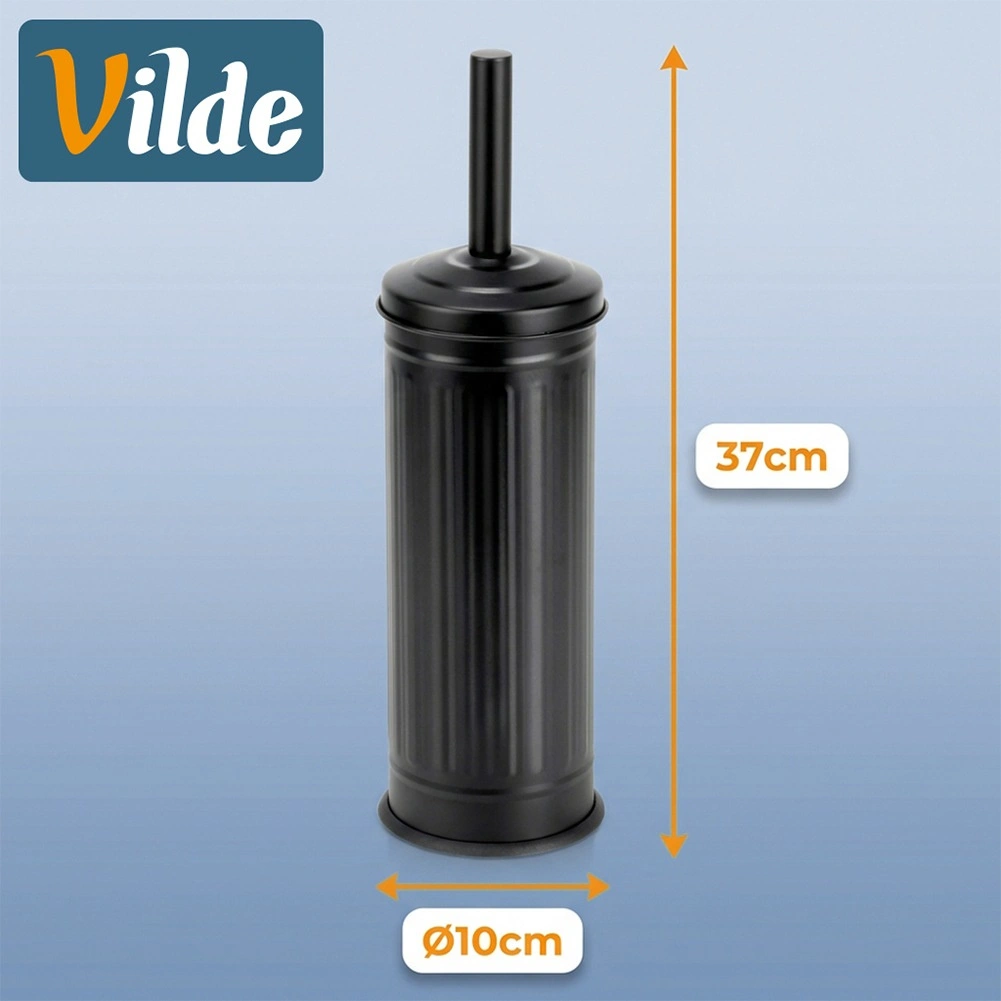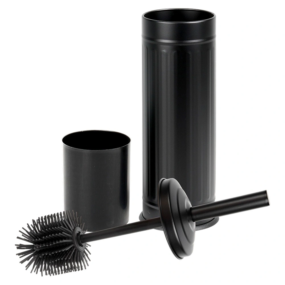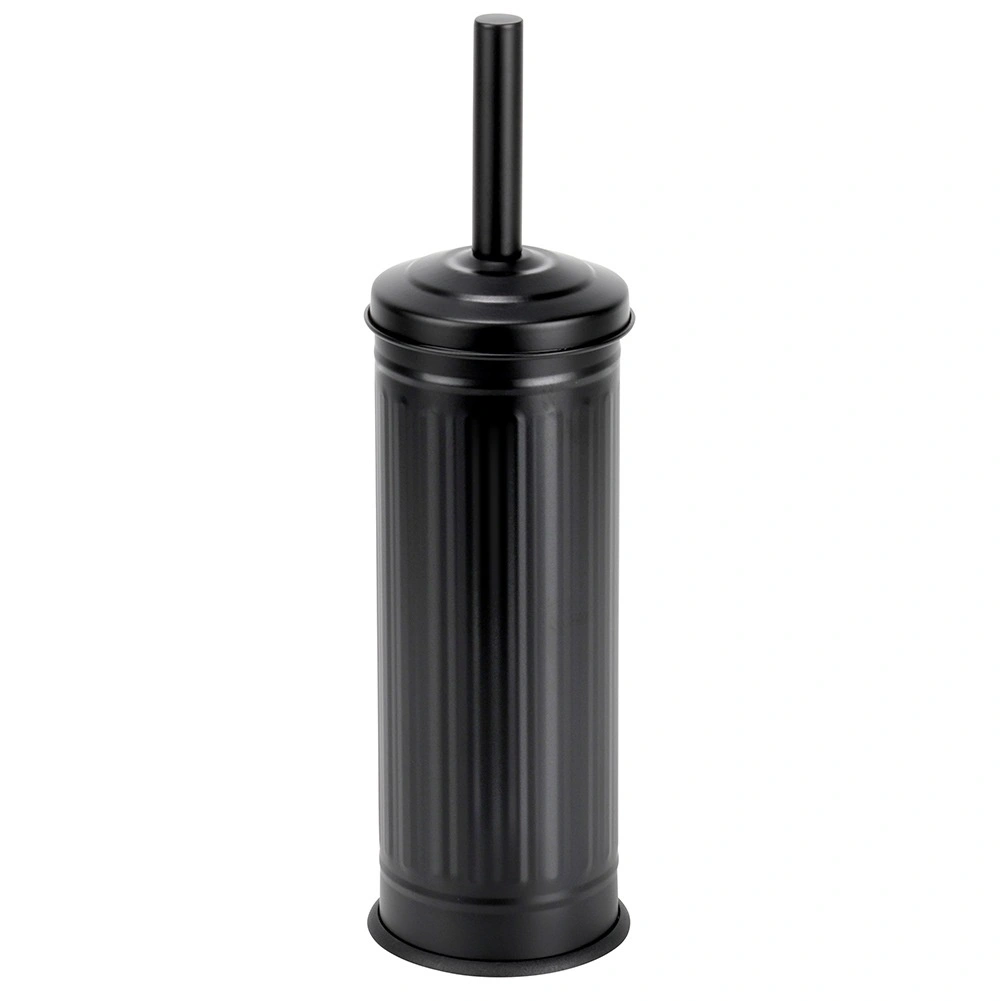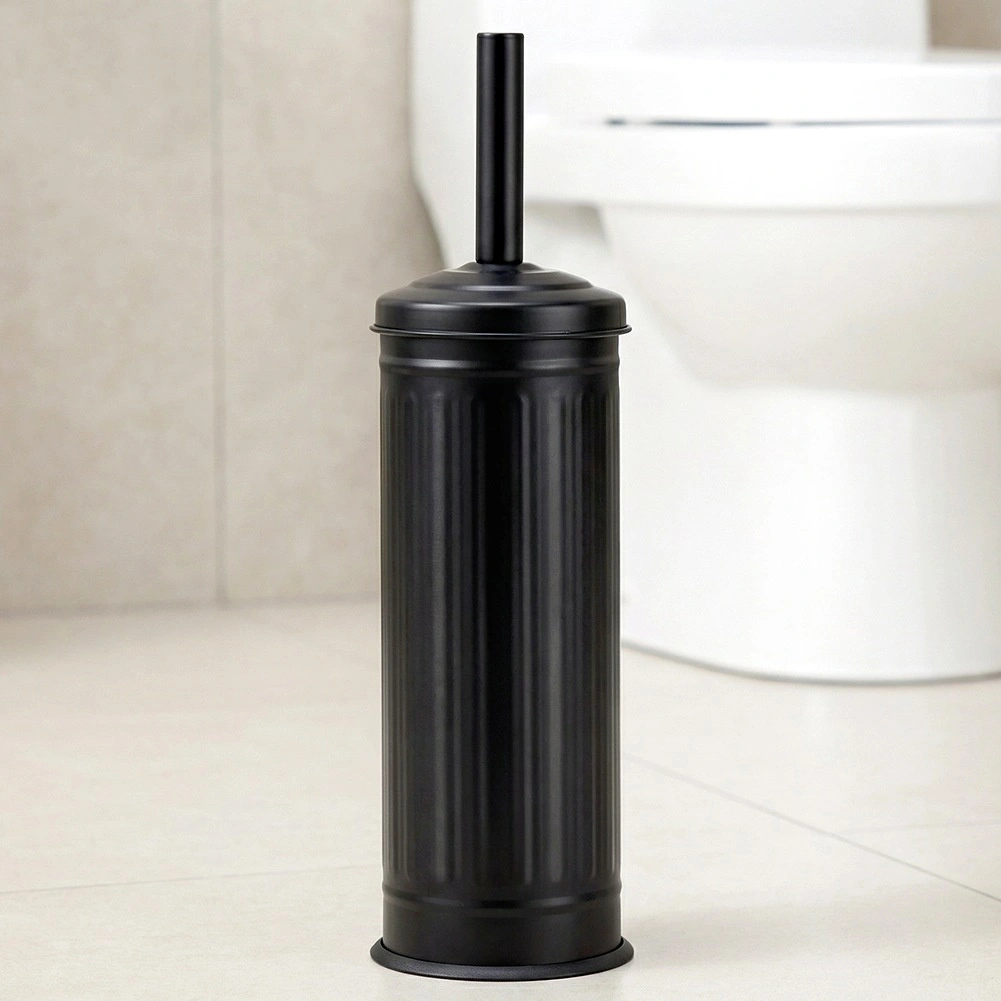 Elegancka i higieniczna szczotka WC ze stojakiem w czarnym kolorze do nowoczesnych łazienek. Wytrzymała konstrukcja, silikonowe włosie dla łatwego czyszczenia, zamknięty metalowy stojak z ociekaczem oraz wymienna głowica czyszcząca dla długiej żywotności.