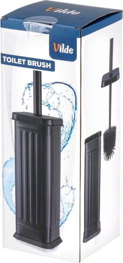 Stabilna kwadratowa podstawa z żebrowanymi ściankami skrywa szczotkę i utrzymuje porządek w przestrzeni. Pokrywka z uchwytem dla wygodnego odkładania.