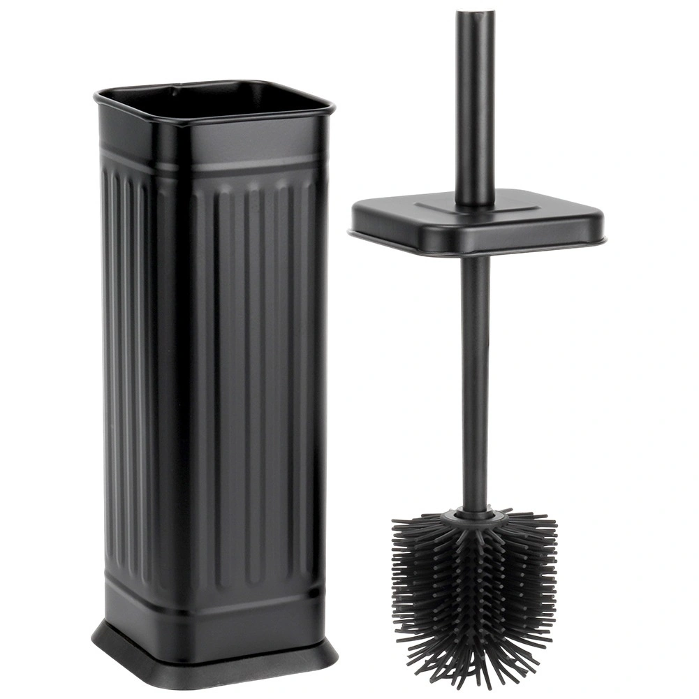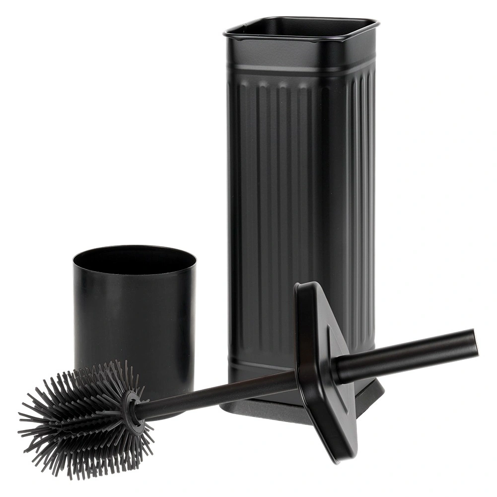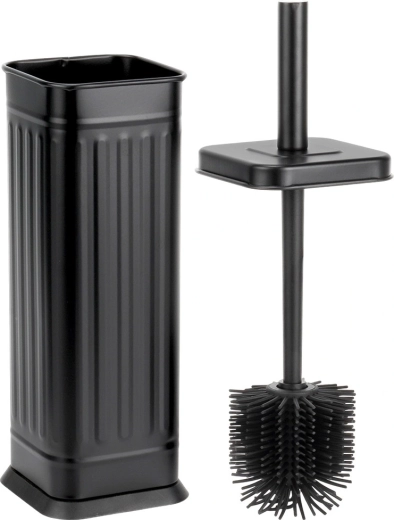Ergonomiczna rączka wygodnie leży w dłoni i ułatwia docisk podczas szorowania. Wyjmowany wewnętrzny pojemnik oraz system odprowadzania wody utrzymują stojak w czystości i bez zapachów. Ponadczasowa czarna kolorystyka i minimalistyczna forma sprawiają, że zestaw świetnie pasuje do klasycznych i nowoczesnych łazienek.
