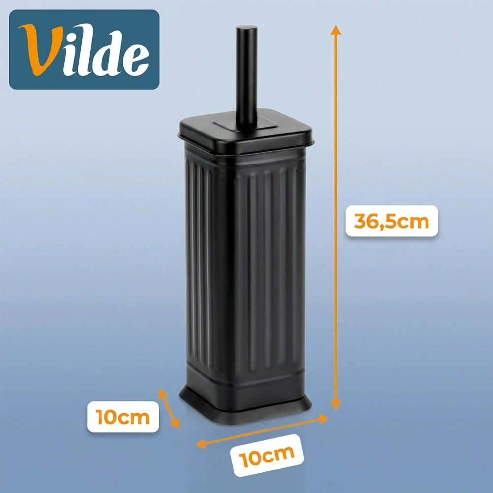 - Zamknięty metalowy stojak: dyskretne przechowywanie szczotki, stabilna konstrukcja i elegancki wygląd.