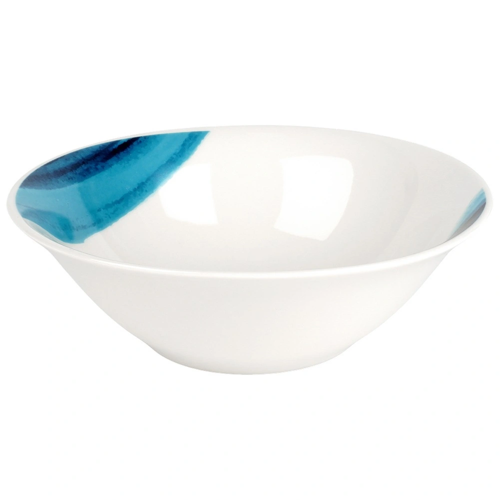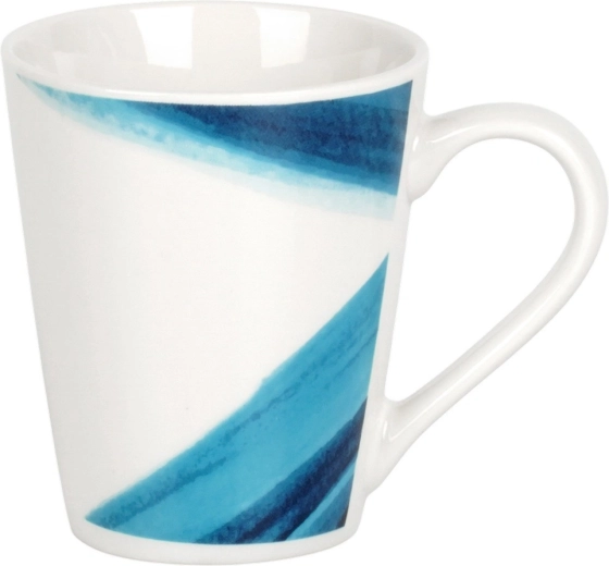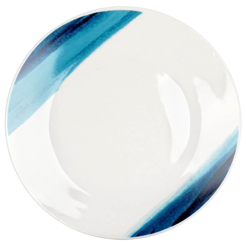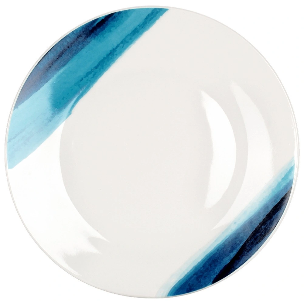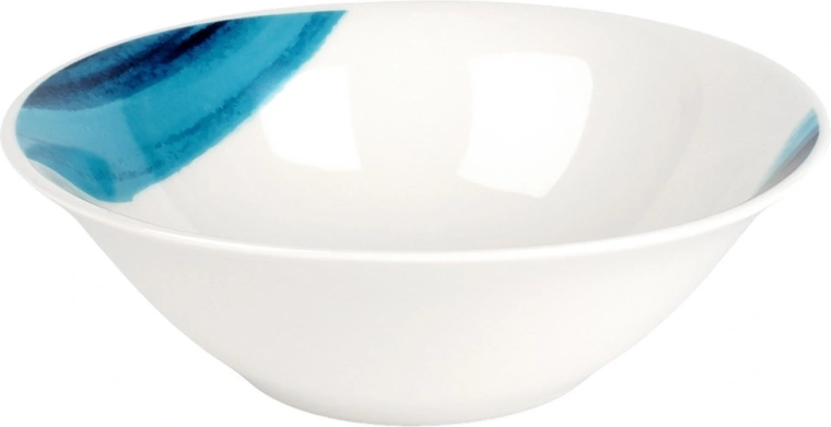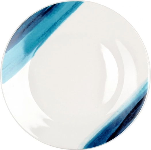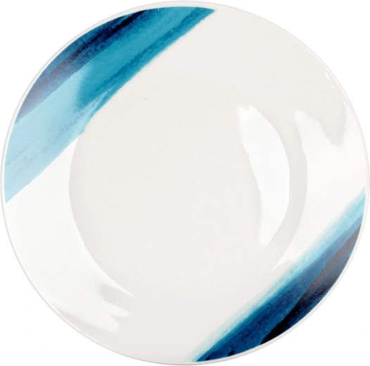 Biała baza z niebieskimi pociągnięciami pędzla prezentuje się świeżo i ponadczasowo. Łatwo zestawisz ją z innymi białymi lub kolorowymi elementami na stole.
