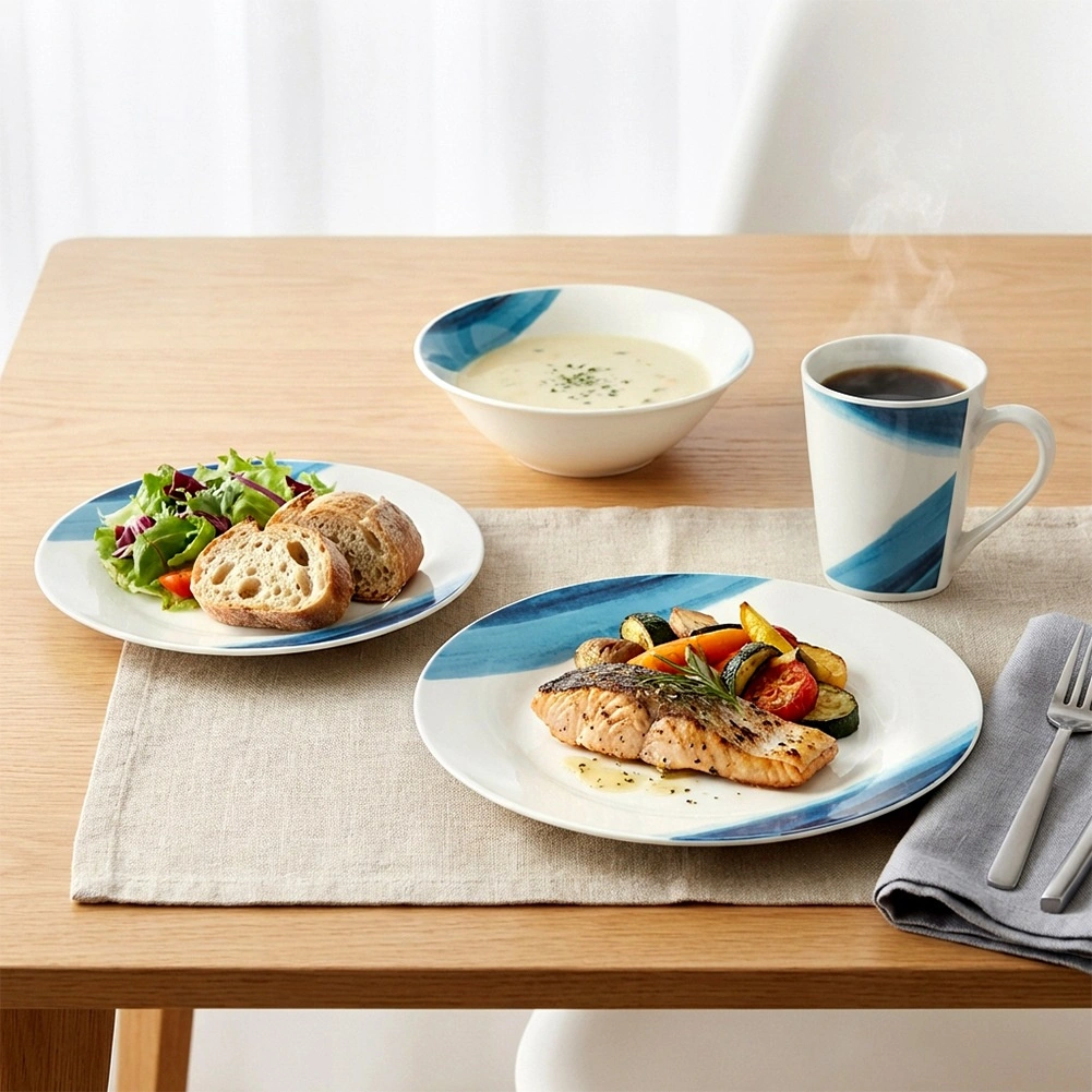 Porcelana z gładką glazurą jest łatwa do utrzymania w czystości, nadaje się do zmywarki i mikrofalówki, a przy prawidłowym użytkowaniu posłuży przez lata. Zestaw doskonały do codziennych rodzinnych posiłków i spotkań z gośćmi – od śniadania, przez obiad, po wieczorną herbatę.