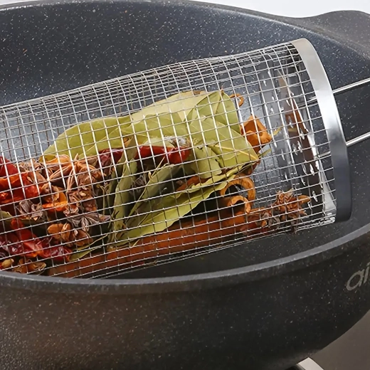 Cylindryczny kosz z siatki nierdzewnej jest idealny do grillowania drobnych składników, które w przeciwnym razie wpadłyby przez ruszt. Drobne perforacje przepuszczają ciepło i dym, dzięki czemu uzyskasz chrupiącą skórkę i soczysty środek bez bałaganu na grillu. Obrotowa konstrukcja ułatwia równomierne wypieczenie bez konieczności przewracania pojedynczych kawałków.