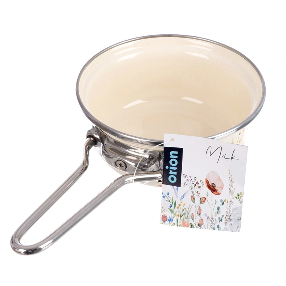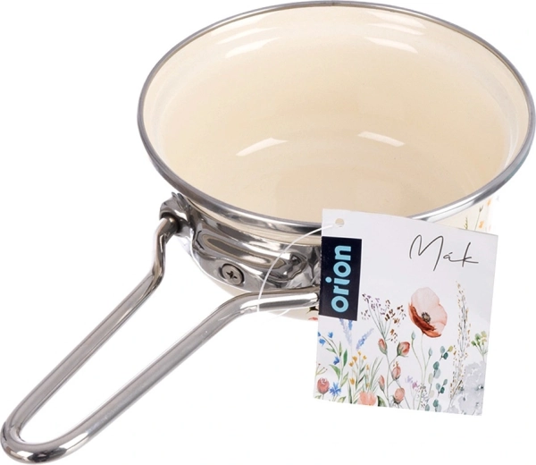 Praktyczny kremowy rondel o średnicy 14 cm i pojemności 650 ml z wysokiej jakości stali emaliowanej z motywem polnych kwiatów. Ma długą, nierdzewną rączkę, nadaje się na wszystkie typy kuchenek, w tym indukcję, a także do piekarnika i jest odpowiedni do zmywarki. Idealny do podgrzewania mleka, przygotowywania sosów czy gotowania jajek. Sprawdzona jakość marki ORION.