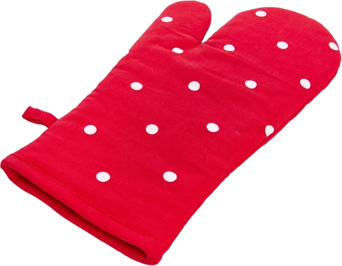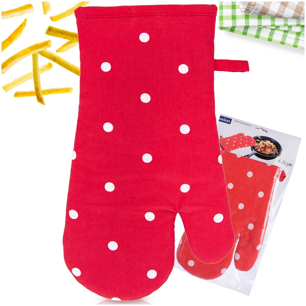 Ta stylowa rękawica w czerwonym kolorze z białymi kropkami wykonana jest z wysokiej jakości 100% bawełny i zapewnia niezawodną ochronę termiczną podczas pracy z gorącymi blachami, naczyniami żaroodpornymi i garnkami. Dzięki uniwersalnym wymiarom wygodnie leży na prawej i lewej dłoni, a pewny chwyt zapewnia pikowana, miękko wyściełana konstrukcja.