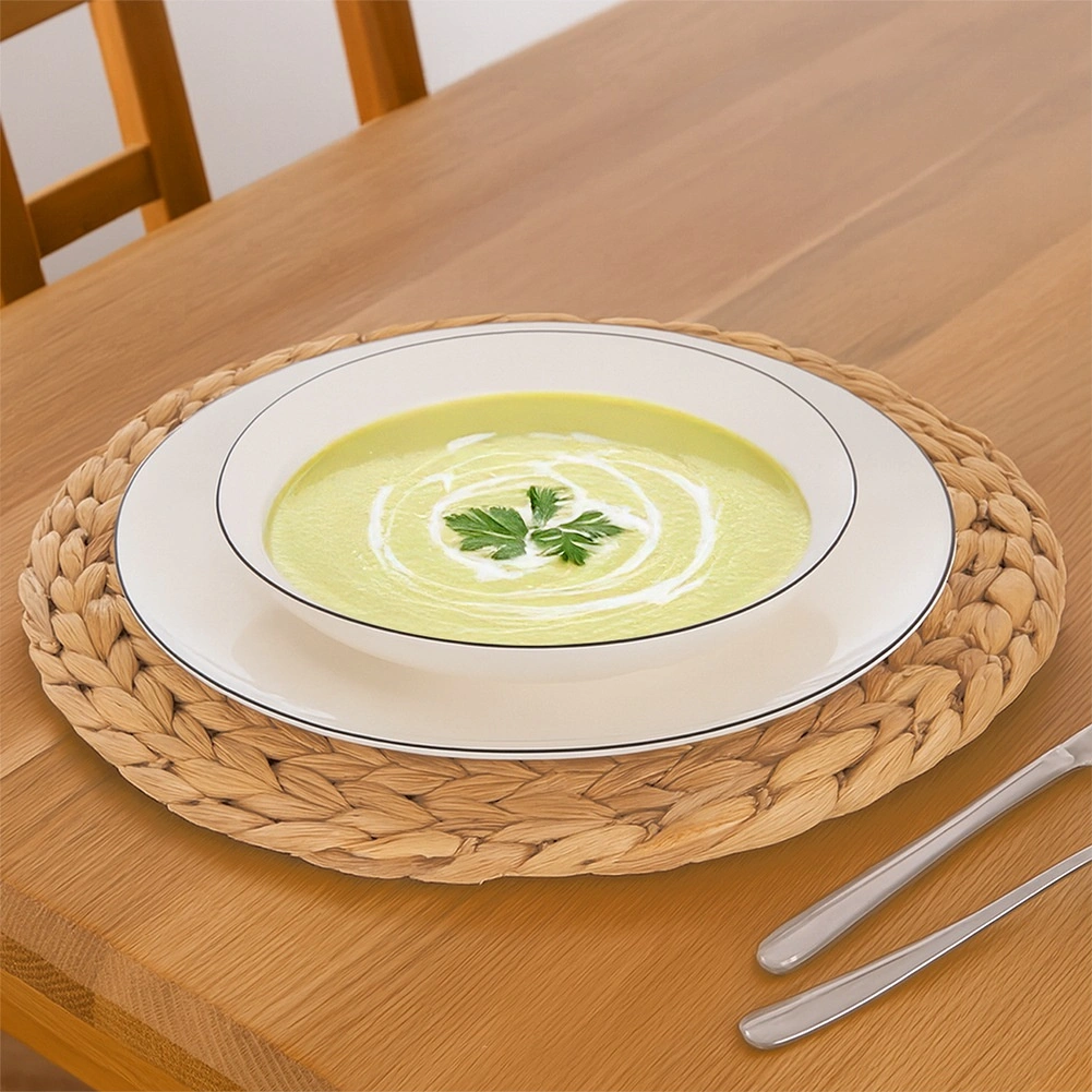 Dzięki pojemności 600 ml i średnicy 20 cm wygodnie podasz zupy, kremy, makarony czy sycące sałatki. Talerz nadaje się do zmywarki i kuchenki mikrofalowej, co docenisz w codziennym użytkowaniu w domu i w gastronomii.