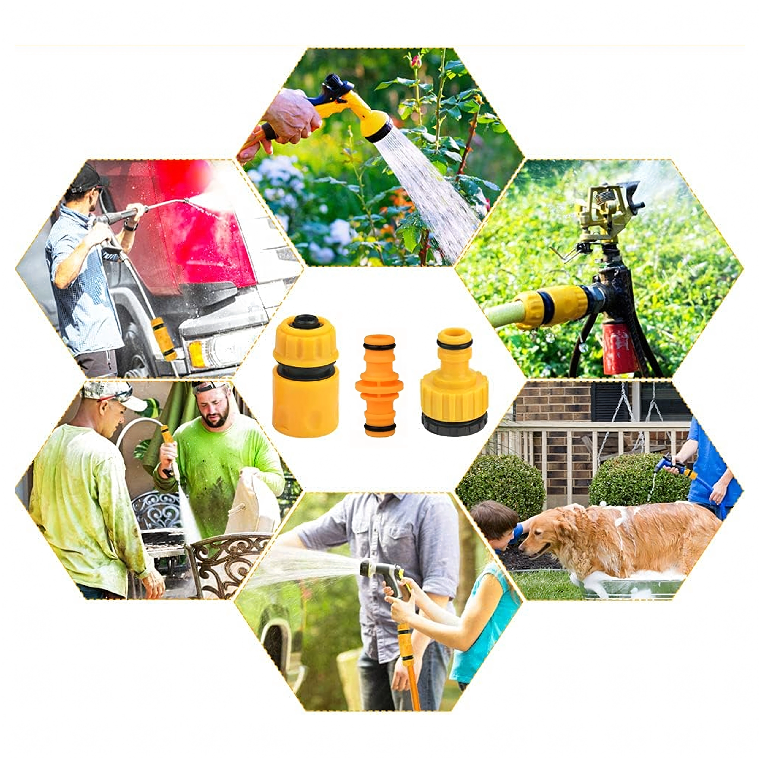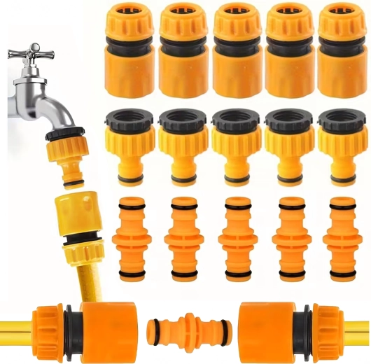 Ten praktyczny zestaw szybkozłączy i adapterów do węży ogrodowych pozwala łatwo połączyć wąż z zewnętrznym kranem, zespolić dwa węże lub błyskawicznie wymieniać dysze i zraszacze. Zgodność ze standardowymi wymiarami 1/2" i 3/4" obejmuje większość instalacji domowych.