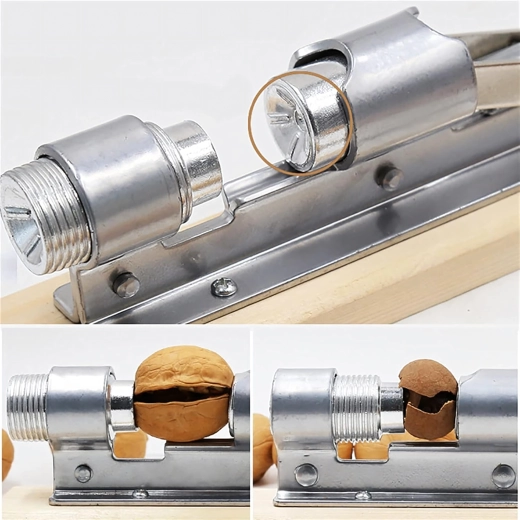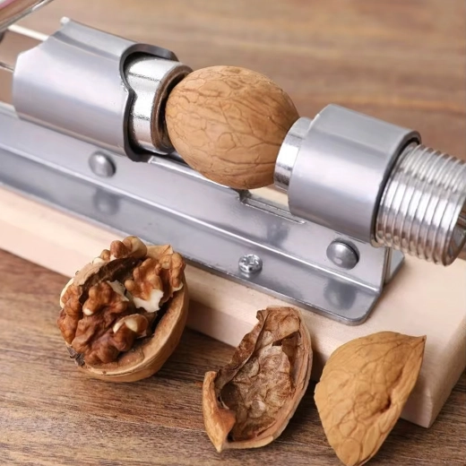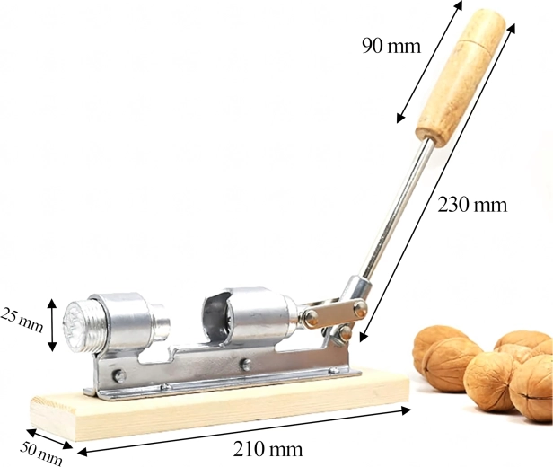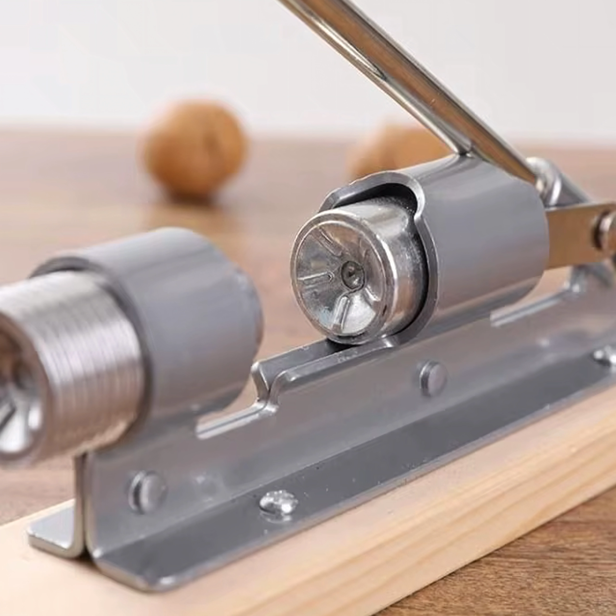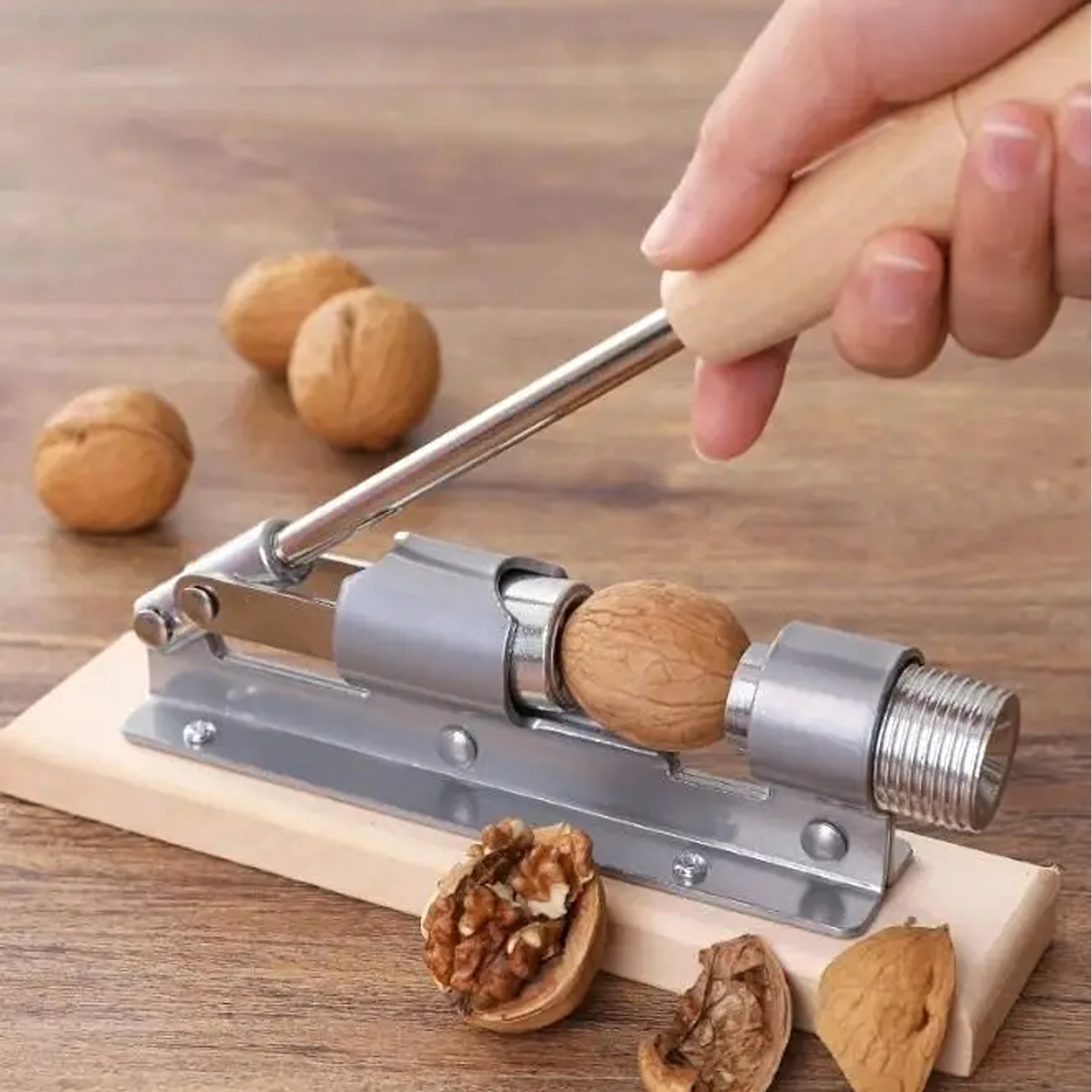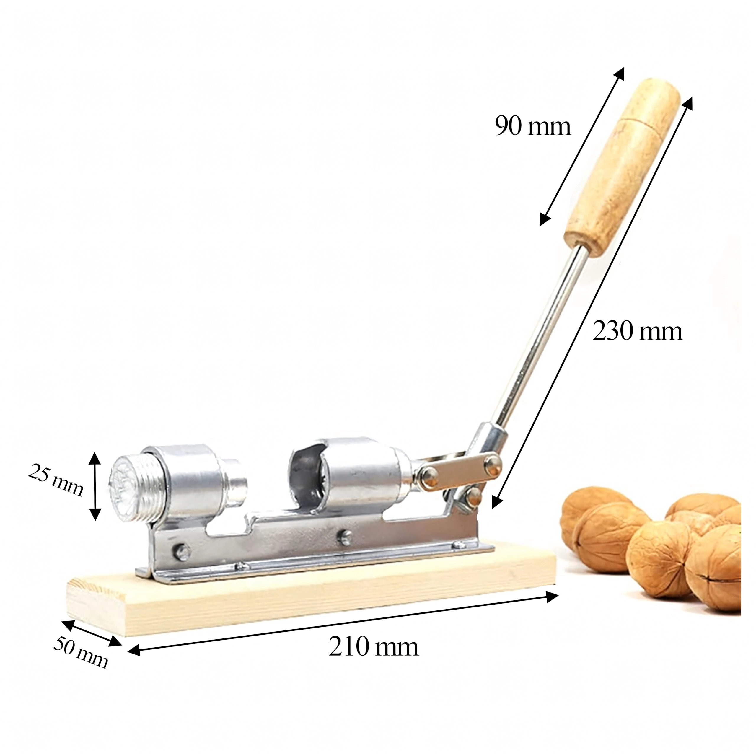 Ergonomiczna drewniana rękojeść chroni dłonie, długie ramię dźwigni zwielokrotnia siłę, a solidnie przykręcana podstawa utrzymuje narzędzie na miejscu. Idealny do kuchni, na działkę i dla smakoszy ceniących nieuszkodzone jądra orzechów.