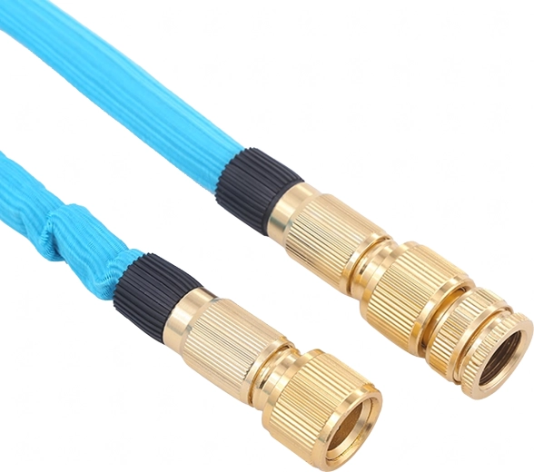 Ten rozciągliwy wąż został zaprojektowany z myślą o maksymalnej wygodzie: po napełnieniu automatycznie wydłuża się nawet do trzykrotności swojej długości, a po spuszczeniu wody kompaktowo się kurczy, ułatwiając przechowywanie. Trwały tekstylny oplot chroni wewnętrzny rdzeń, zmniejsza ryzyko załamań i wydłuża żywotność. Mosiężne końcówki z uszczelnieniem zapewniają mocne, niekapiące połączenie z kranami i zraszaczami.